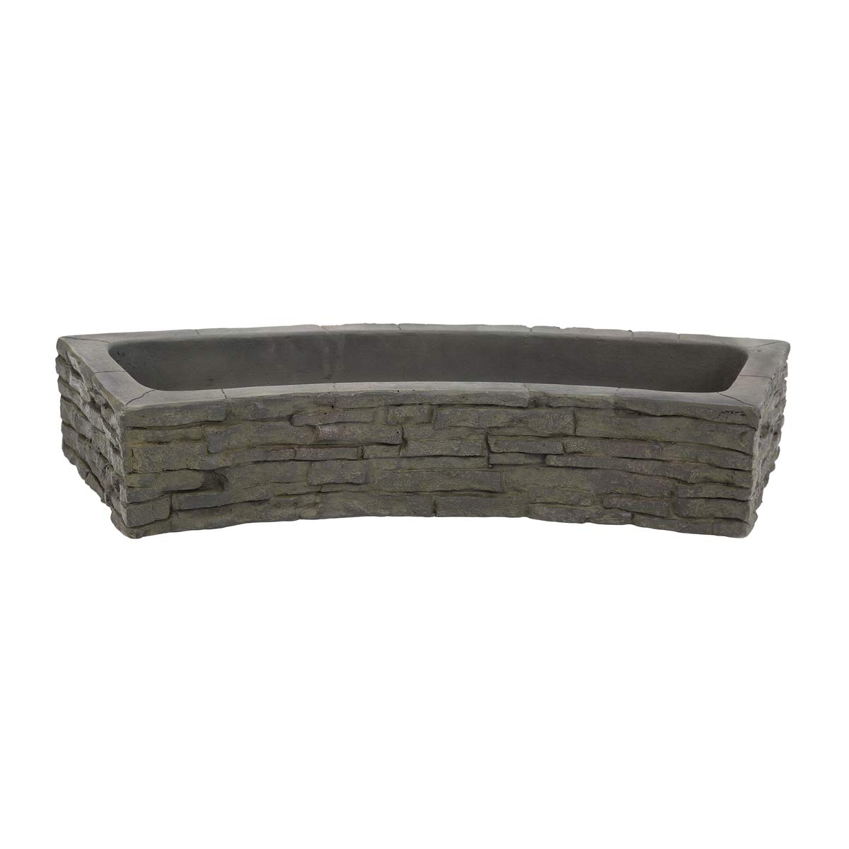 The Stacked Slate Wall Topper Curved Quad-Spill makes it easy to add a unique, customized fountain to any location. Simply add a curved stacked slate wall base (not included) to create a water feature that is sure to impress. Water is pumped through three separate water outlets at the top of the wall before spilling over the textured feature. The impressive natural-looking finish looks and feels like real stone and the durable, lightweight fiber-resin composite construction is built to last. Multiple units can be stacked and combined for endless design configurations.
