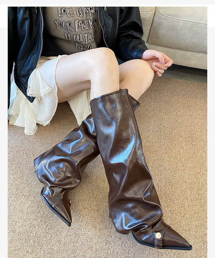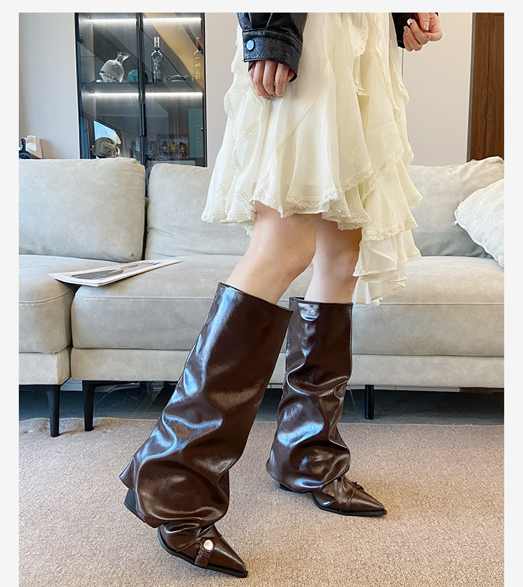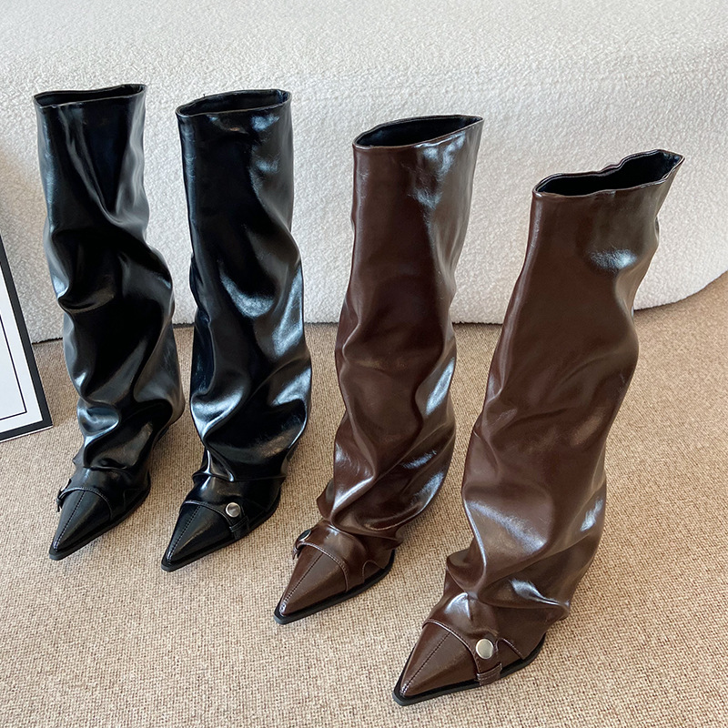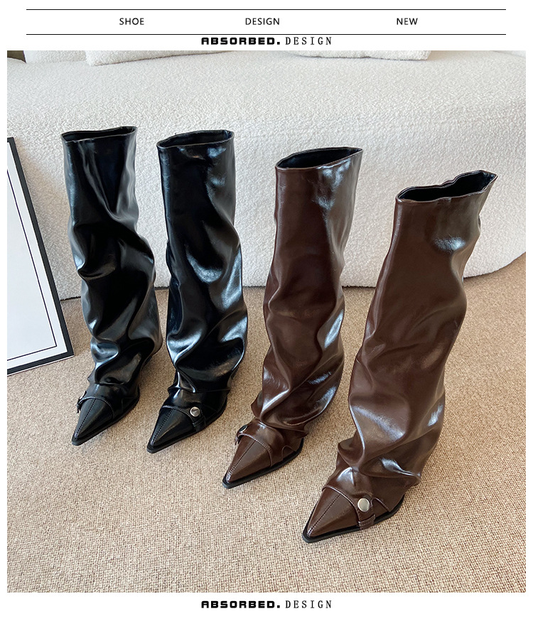High Heels, Trouser Tube Boots, Autumn Winter, Pointed Thick Heels, Long Boots.