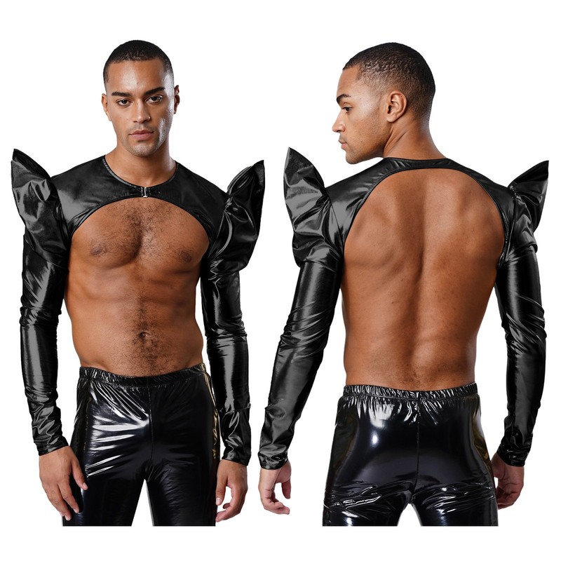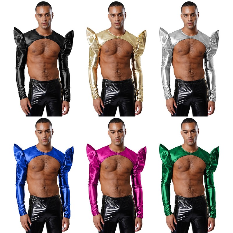 The metallic shiny finish gives the top a modern and eye-catching look, making it a trendy choice for fashion-forward men.