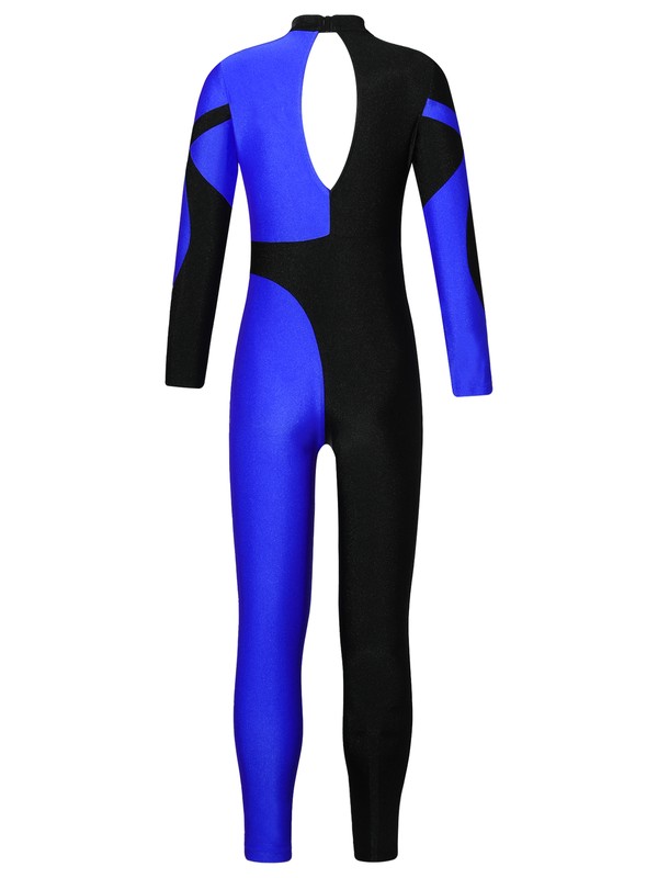 Patchwork design. It is a fashionable jumpsuit for skating dance in stage performance.