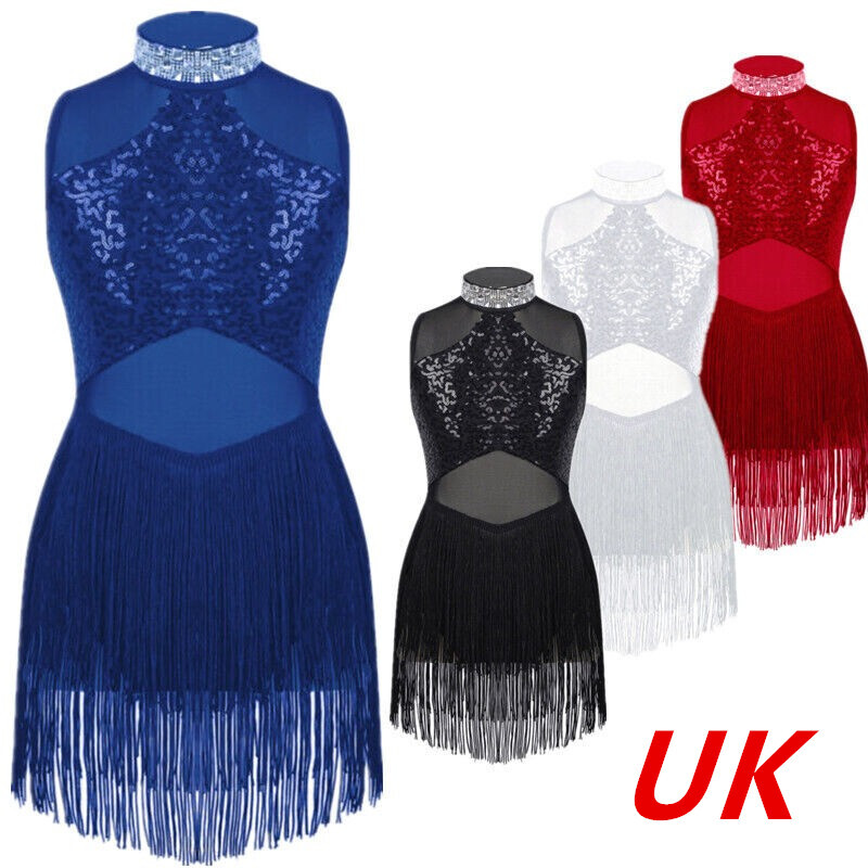 Halter neck, sleeveless, open back, sequins and pompom adorned, irregular hem dress.