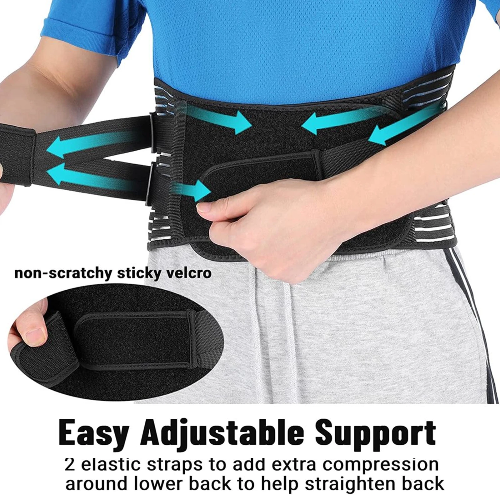 【PREVENT BACK INJURIES】Back support with 2 elastic straps are designed to add extra compression around lower back to prevent back injuries from weight lifting, long time standing or sitting, doing housework, working, etc. Relief waist muscles ache, disc herniation, sciatica, scoliosis etc when wearing the back belt.