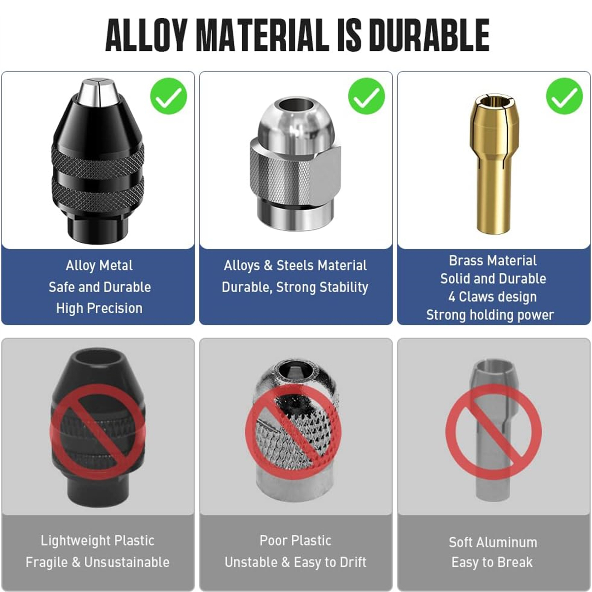 Mandrin à 4 mâchoires compatible pour les outils rotatifs sans fil et filaires Dremel (y compris les forets, les tambours de ponçage, le polissage