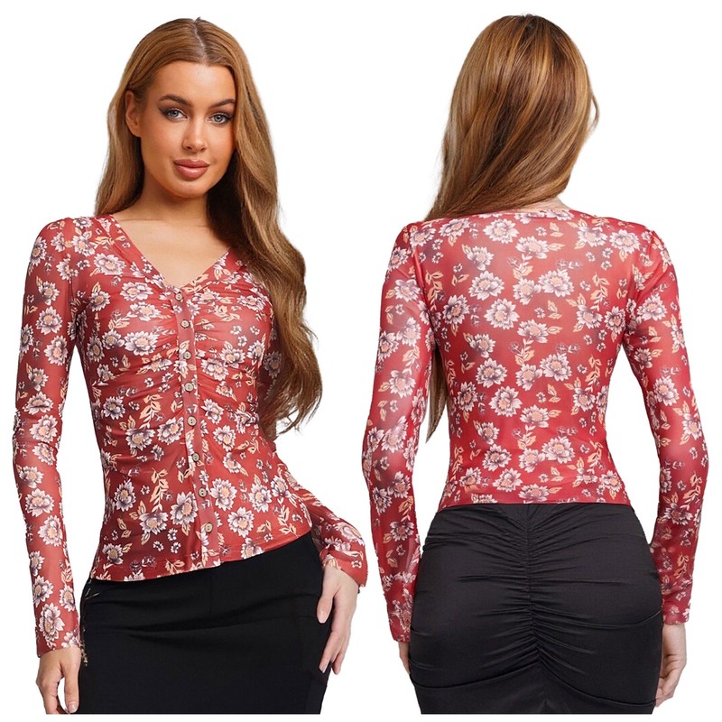 The sheer mesh design adds a touch of mystery and allure, making it a trendy and eye-catching piece in line with current fashion trends.