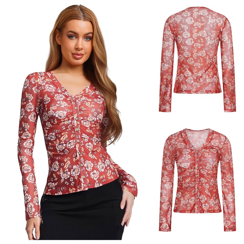Made from a blend of nylon and spandex, the blouse is stretchy and comfortable, adapting well to body movements and providing a great wearing feeling.