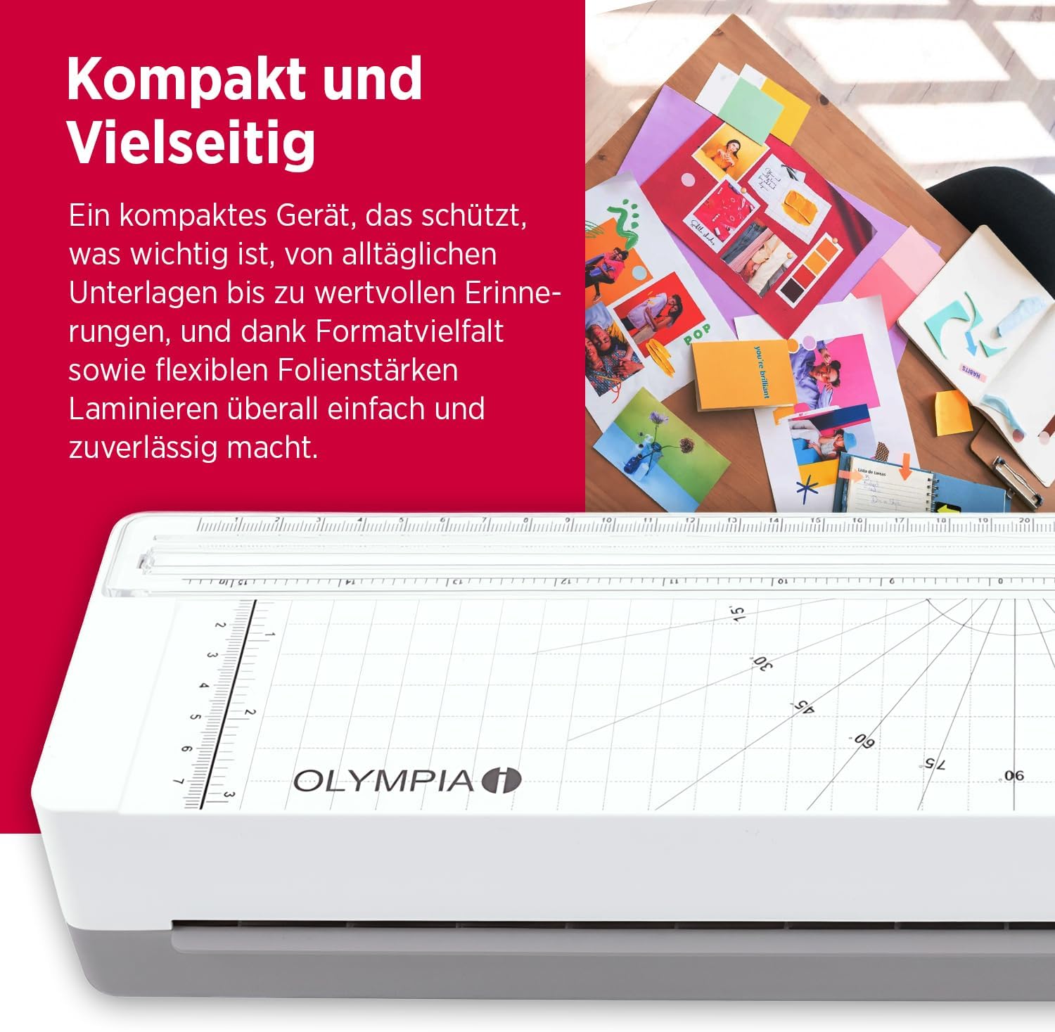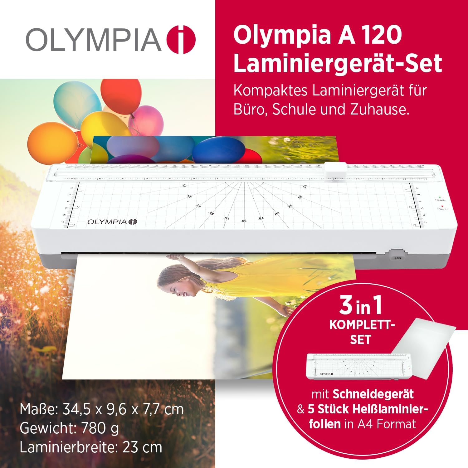 Das Olympia A 120 Combo Laminiergerät ist der perfekte Begleiter für Büro, Schule und Zuhause. Es schützt Ihre Dokumente, Fotos und Unterlagen zuverlässig vor Abnutzung, Schmutz und Feuchtigkeit – und das in einem kompakten, platzsparenden Gerät.