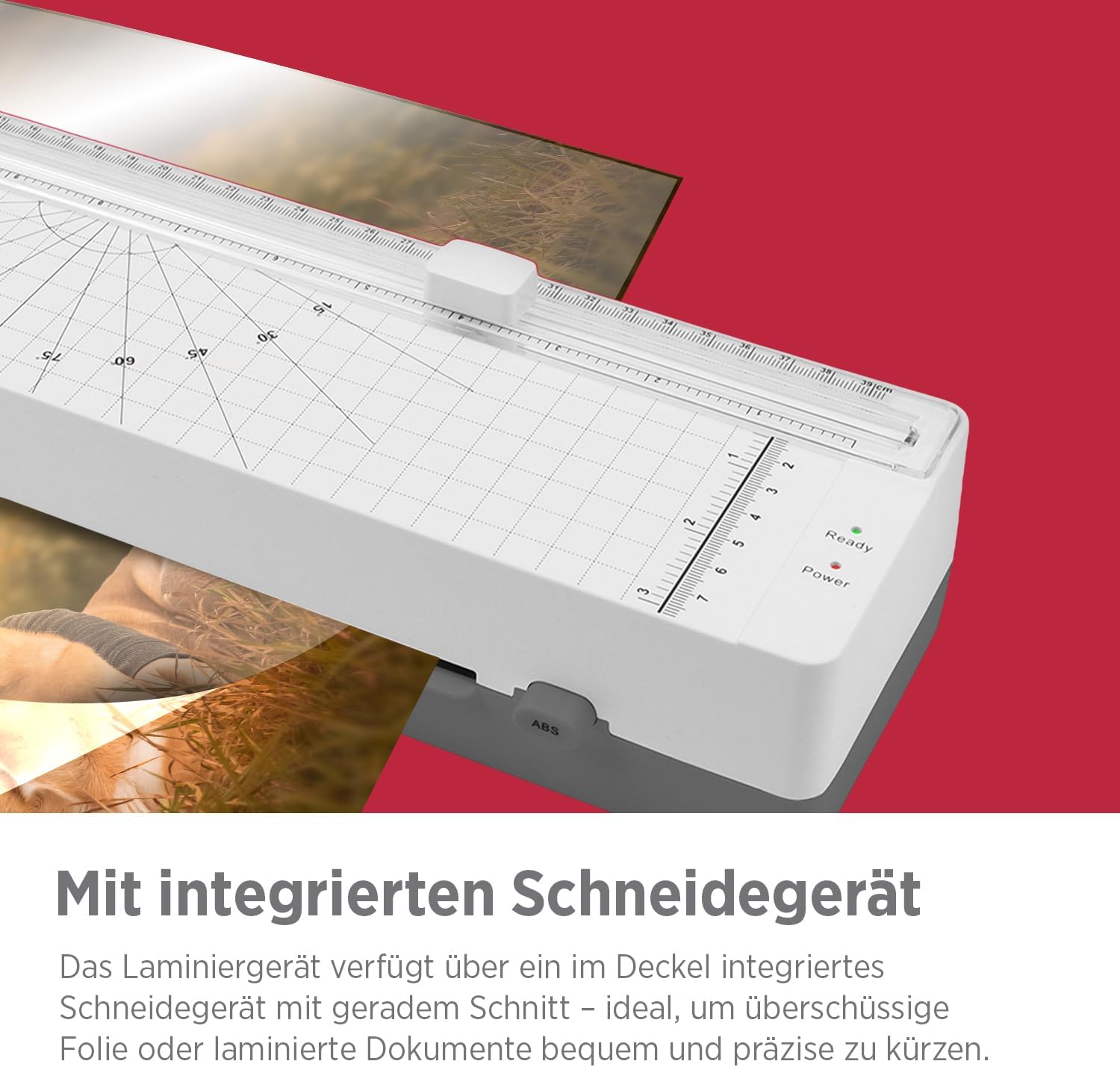 Dank des integrierten Schneidegeräts mit geradem Schnitt können laminierte Dokumente direkt bearbeitet und zugeschnitten werden. Das Laminiergerät eignet sich für Formate bis DIN A4 (Arbeitsbreite 230 mm) und verarbeitet Folienstärken von 80 bis 125 Micron.