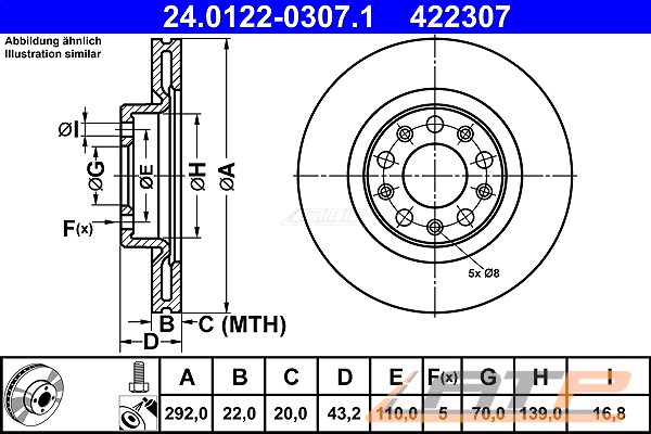 2x Bremsscheibe: ATE 24.0122-0307.1