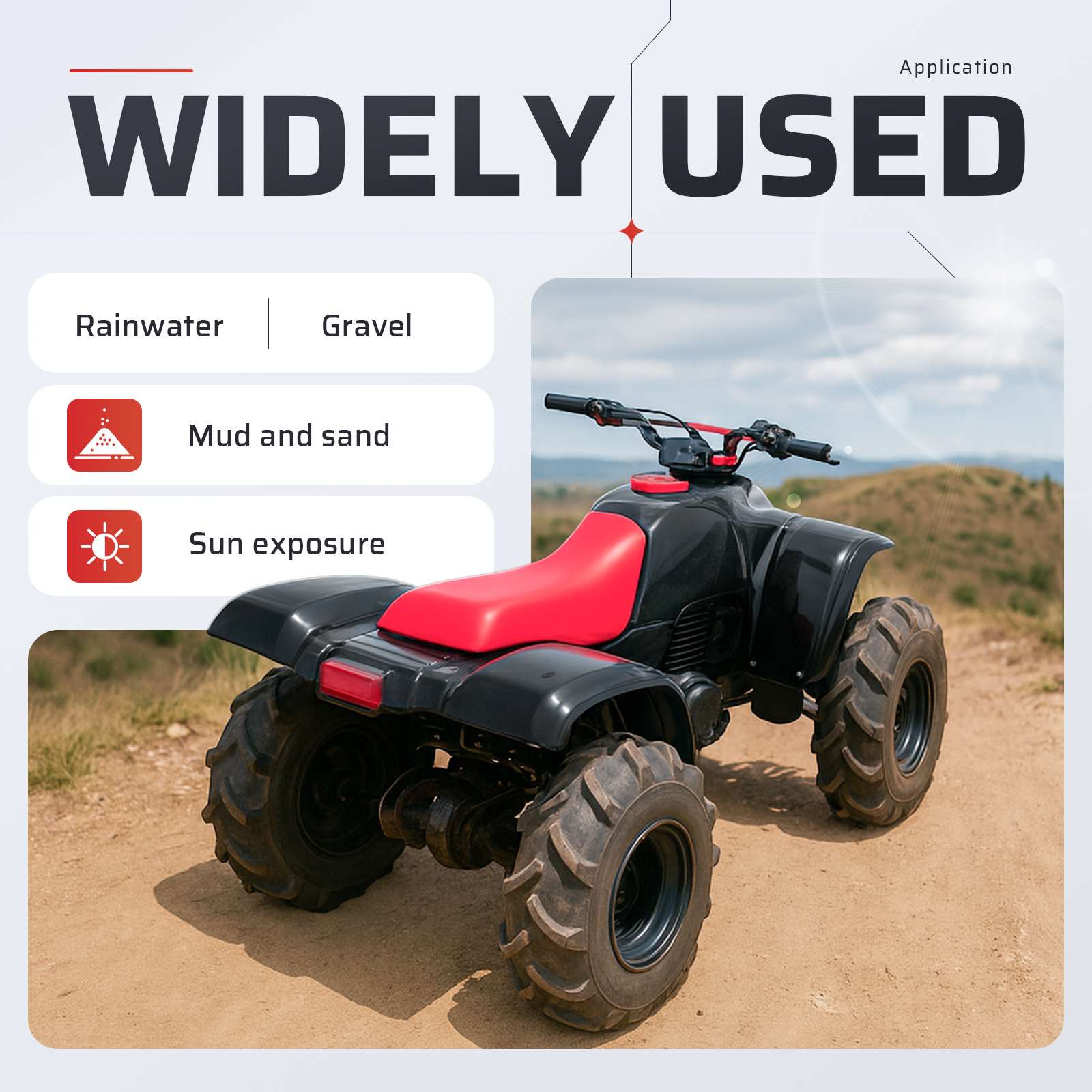3. The fenders protect the vehicle from mud and sand, while also shielding components from wind, rain, and dust. The black color is also stain-resistant and easy to maintain.