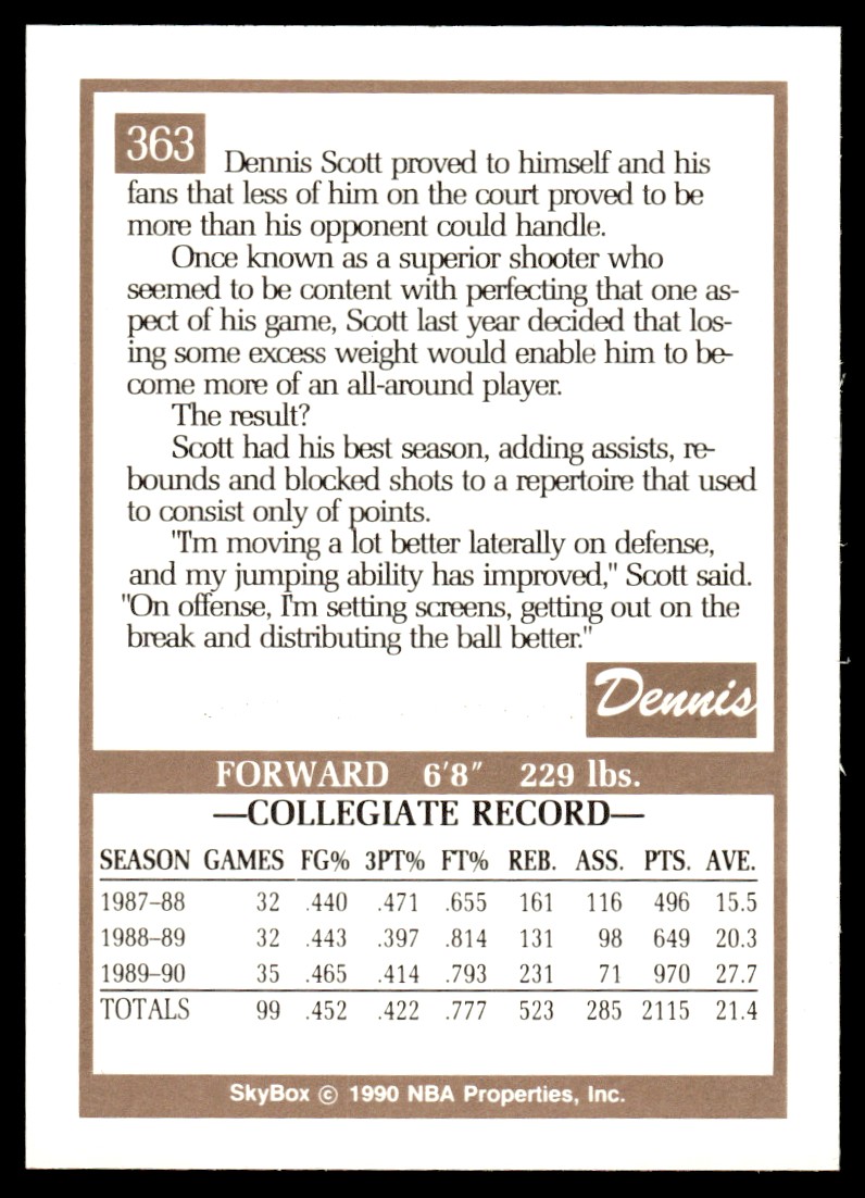 | 1990-91 SkyBox Dennis Scott Rookie Orlando Magic #363 |