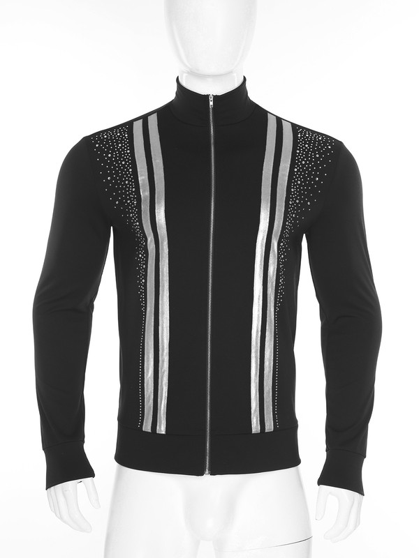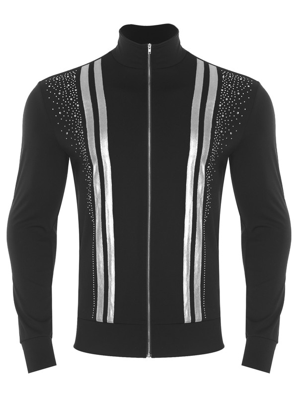 Die metallisch glänzenden Streifen und Strasssteine verleihen einen Hauch von Glamour und lassen die Jacke hervorstechen, ganz im Trend auffälliger Sportbekleidung.
