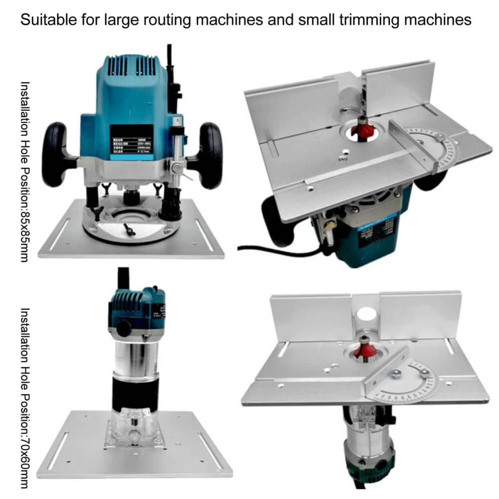 [Versatile Use] This router table insert plate features 2 mounting hole sizes, 85x85mm and 70x60mm, suitable for both large routers and small trimmers.