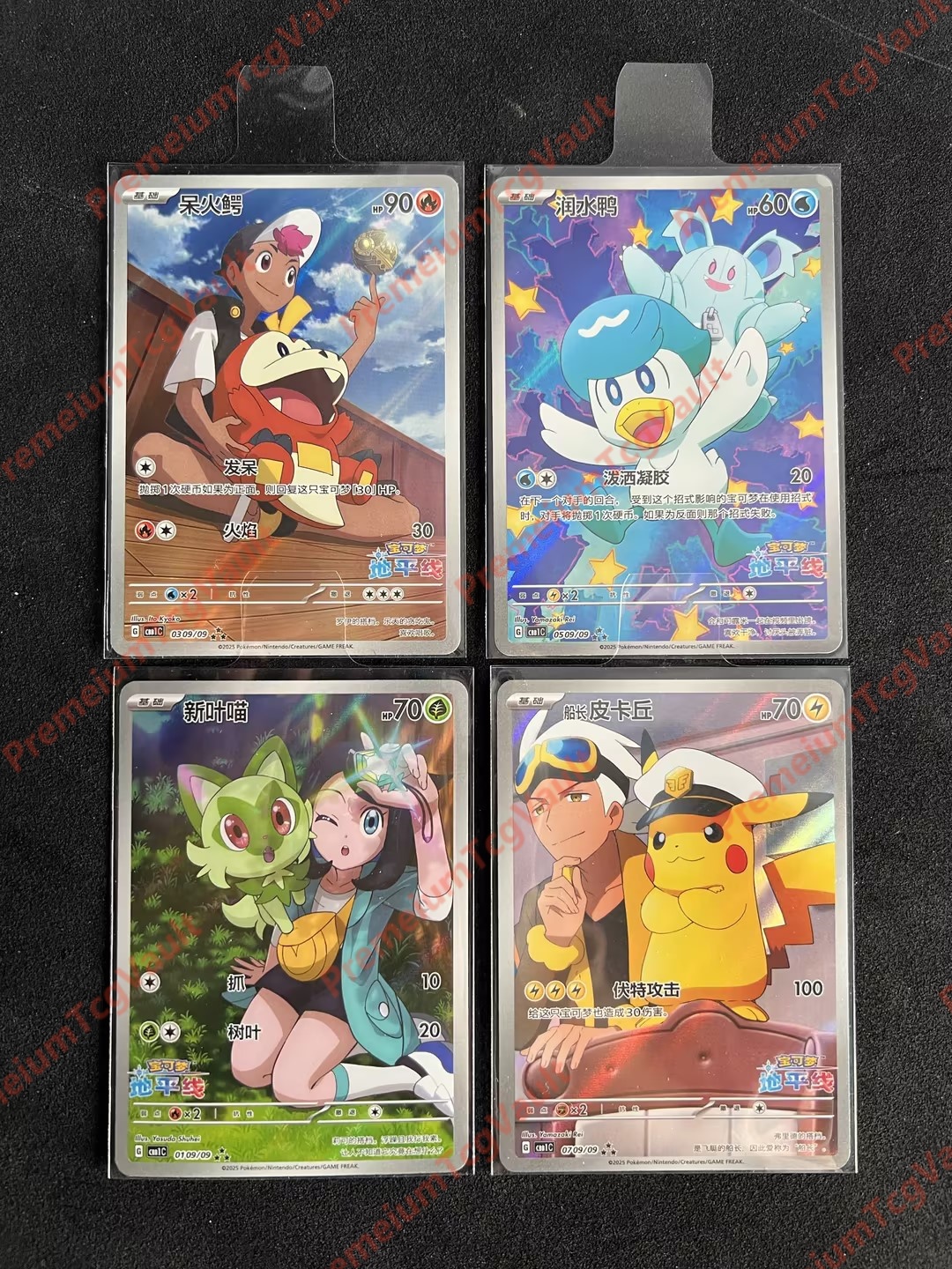 Product: IN STOCK Pokémon Chinese 4Pcs Captain Pikachu Sprigatito Fuecoco AR Holo NM