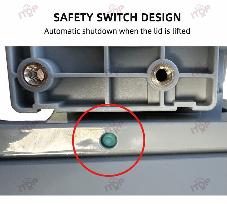 * Safety switch design. Automatic shutdown when the lid is lifted