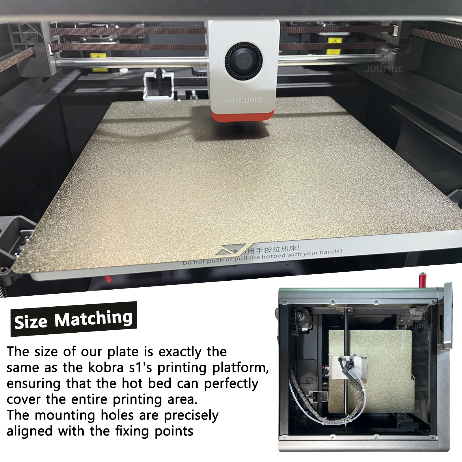 【Premium PEl Powder Coating】Kobra S1 Plate PEI Sheet come with heat and wear-resistant, frosted PEl powder coating, the plate surface is not easy to get scratched or damaged.The textured PEl has high adhesion to prevent the model from warping.