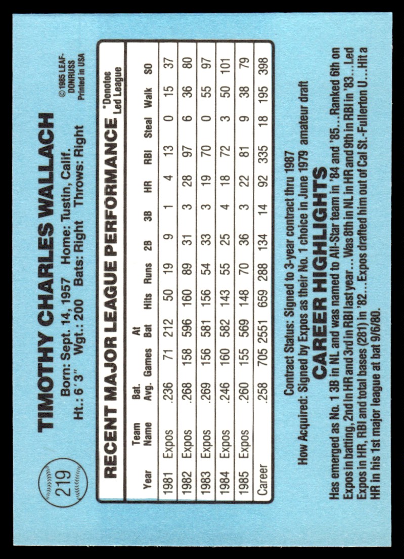 | 1986 Donruss Tim Wallach Montreal Expos #219 |