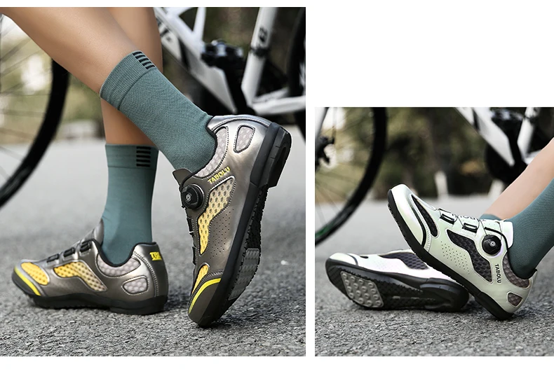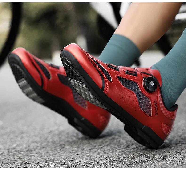 2. Roatating Lacing System: Gear technology for quick tightening of the laces. Wear the bike shoes quickly in just 3 seconds.