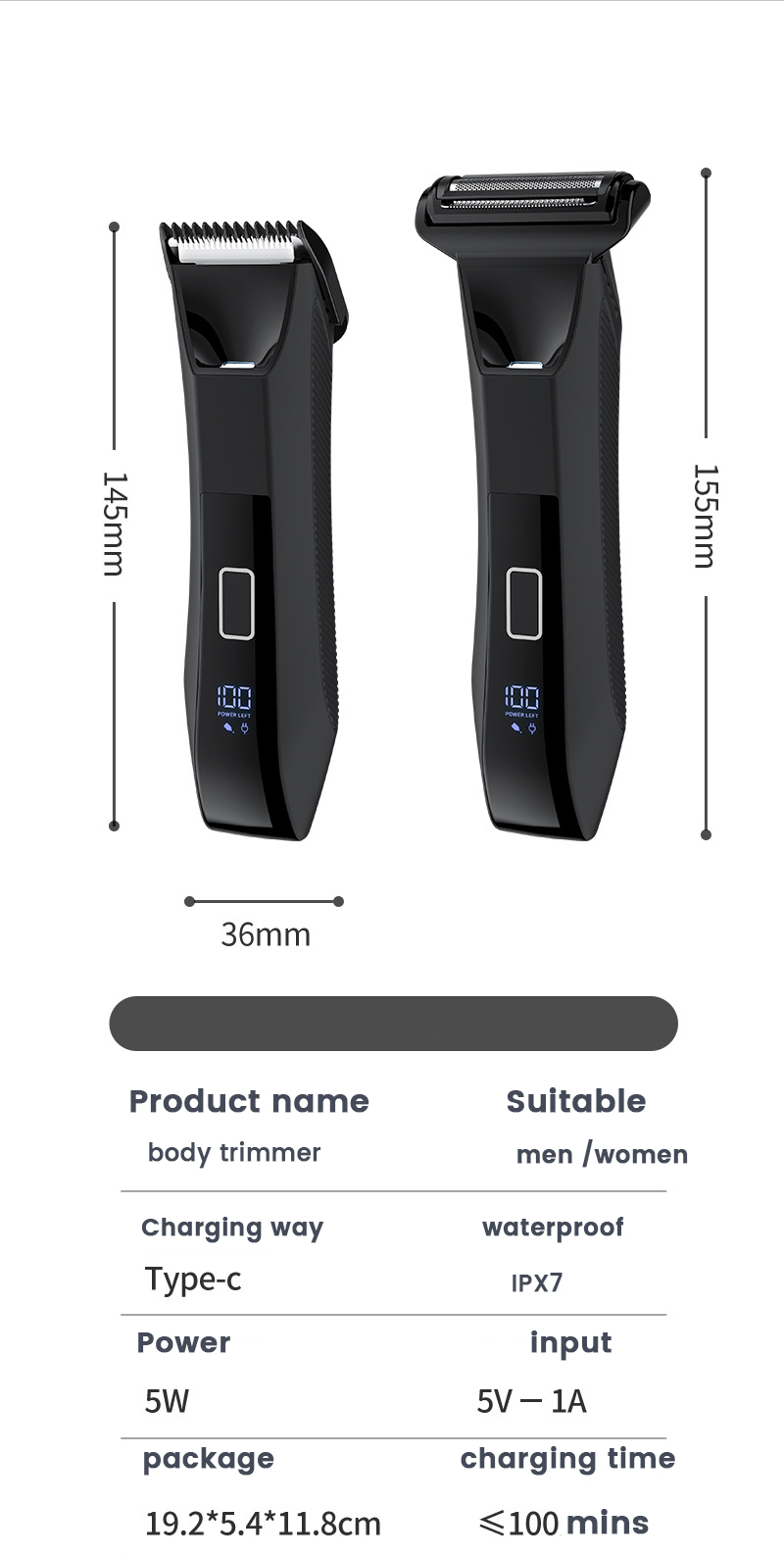 【IPX7 Waterproof & Lightweight】The body trimmer is 100% water-resistant, allowing you to shave your sensitive areas and whole body safely in the shower or clean it easily in the sink. With its ergonomic design, the body trimmer ensures an easy grip, while its lightweight construction makes daily grooming effortless without causing any strain.