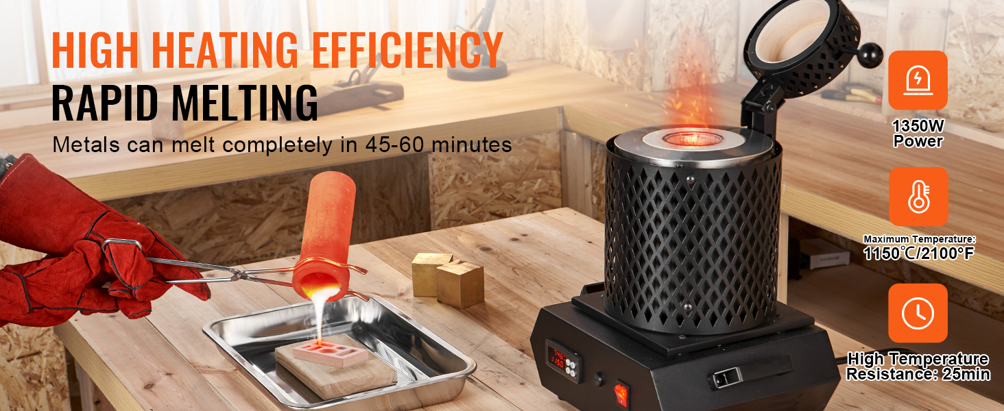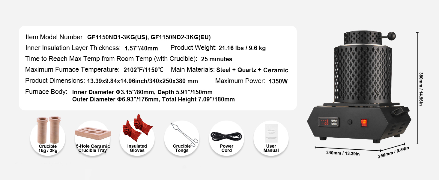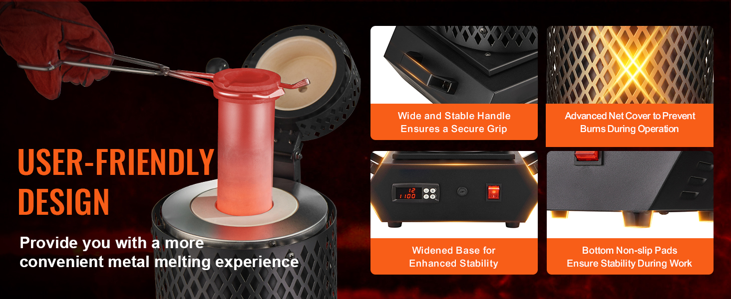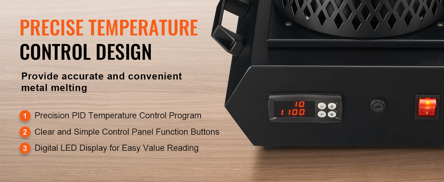 Dotato di un sistema di controllo digitale PID, questo forno elettrico per fusione consente di monitorare e regolare la temperatura in modo accurato e continuo. Il pannello di controllo, con quattro pulsanti intuitivi e un display LED digitale ben visibile, garantisce una gestione semplice e precisa della temperatura, ideale anche per chi è alle prime esperienze.
