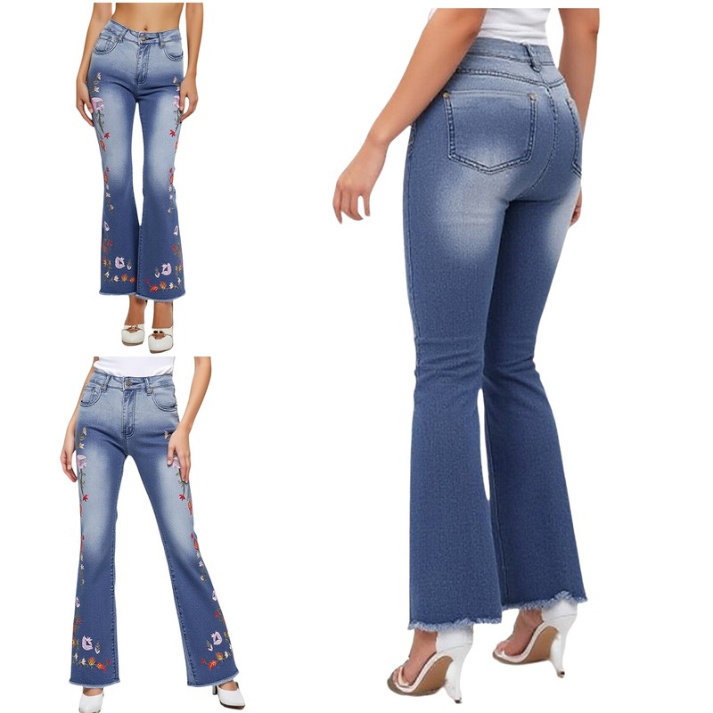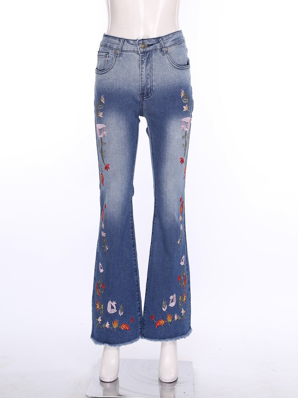 The exquisite floral embroidery adds a touch of femininity and uniqueness, making these jeans stand out in the crowd and keeping up with the latest fashion trends.