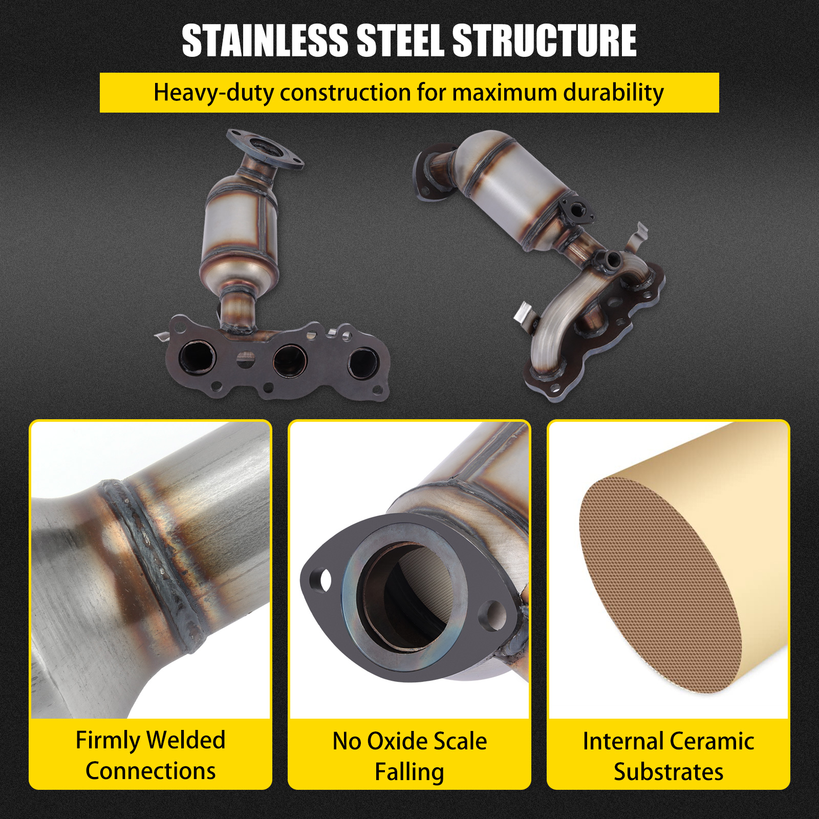 The pipe constructed from 14 gauge tubing, with original OE style heavy duty Stainless flanges, INNER BRAID FLEX PIPE and High loaded OBDII BY DESIGN Catalytic Converter
