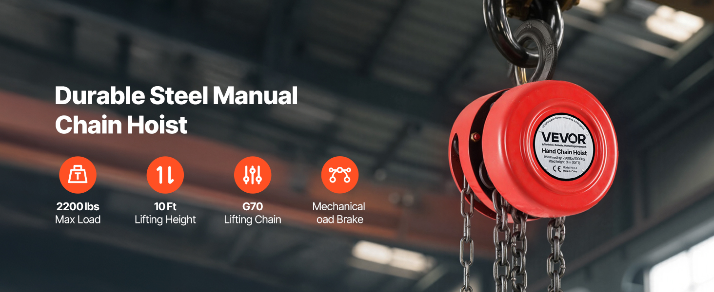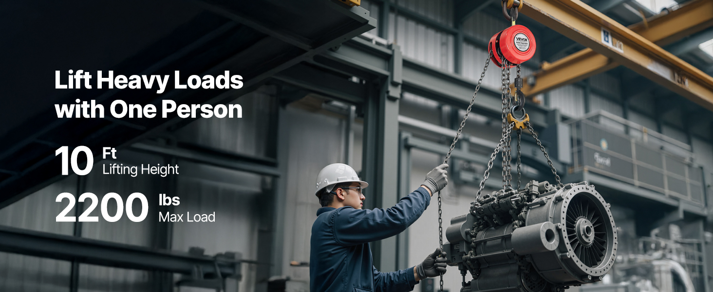 - Capacità di sollevamento di 2200 libbre (999 kg): questo paranco a catena manuale gestisce facilmente carichi pesanti, supportando fino a 2200 libbre (1 T) e raggiungendo altezze fino a 10 piedi (3 m). Ideale per garage, cantieri edili e magazzini