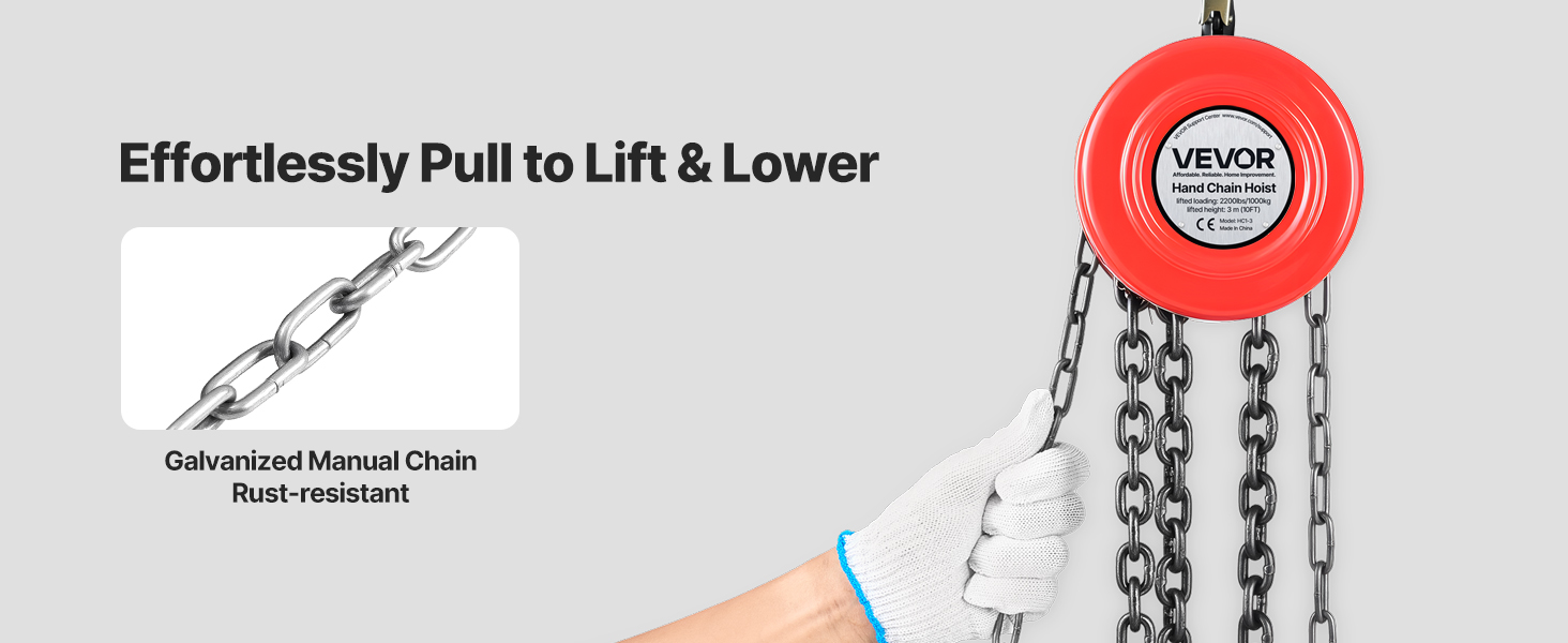 - Funzionamento senza sforzo: compatto e facile da usare, questo paranco manuale a catena è dotato di cuscinetti a sfera scorrevoli, che richiedono solo 329 N di forza a pieno carico, rendendo il sollevamento un gioco da ragazzi