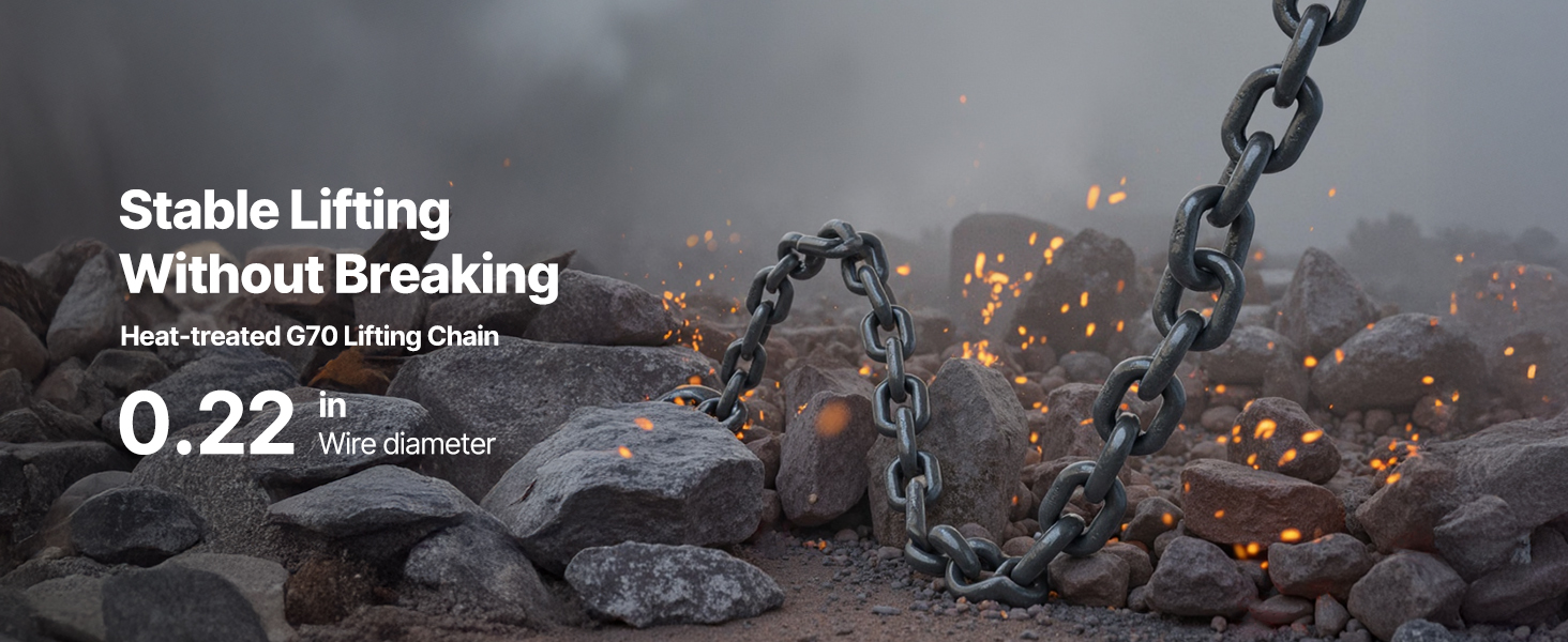 - Struttura in acciaio resistente: realizzata in lega di acciaio, questa catena manuale è progettata per durare. L'involucro rinforzato e la catena trattata termicamente G70 garantiscono una durata superiore, resistenza alla corrosione e alla rottura