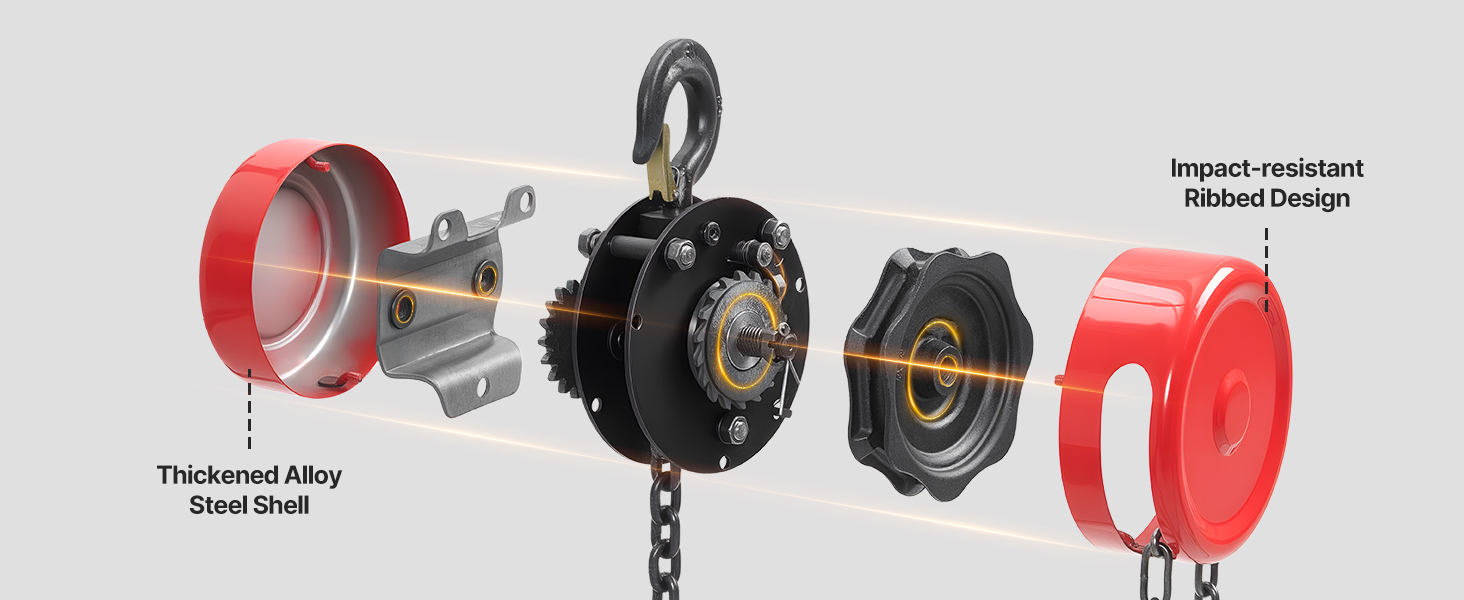 - Sollevamento preciso e freno di sicurezza: la tua sicurezza è la nostra massima priorità. Il freno di carico meccanico del paranco a catena consente un controllo preciso, mantenendo il carico saldamente in posizione ed evitando cadute accidentali