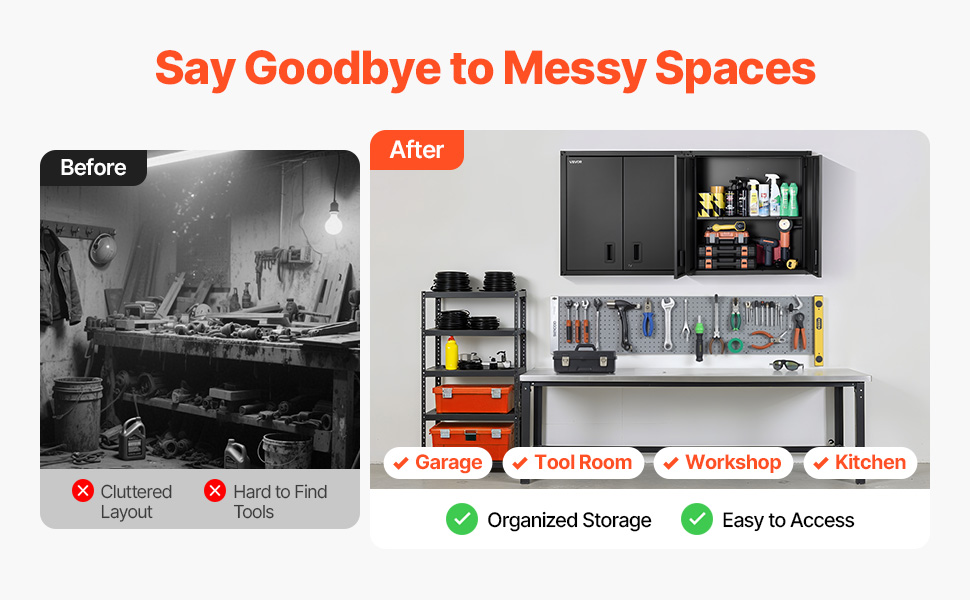 Il nostro mobiletto da parete in metallo tiene in ordine attrezzi e materiali per garage, officine, cucine e altro ancora. Tutto rimane in ordine e a portata di mano ogni volta che ne hai bisogno.