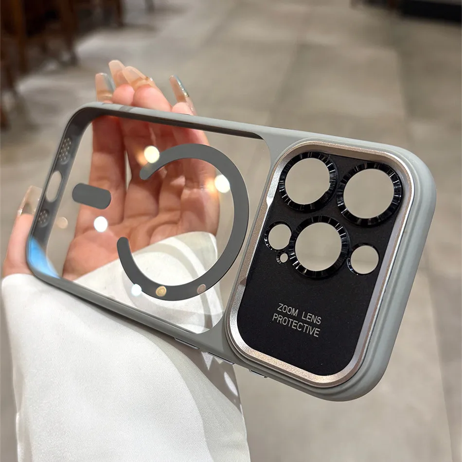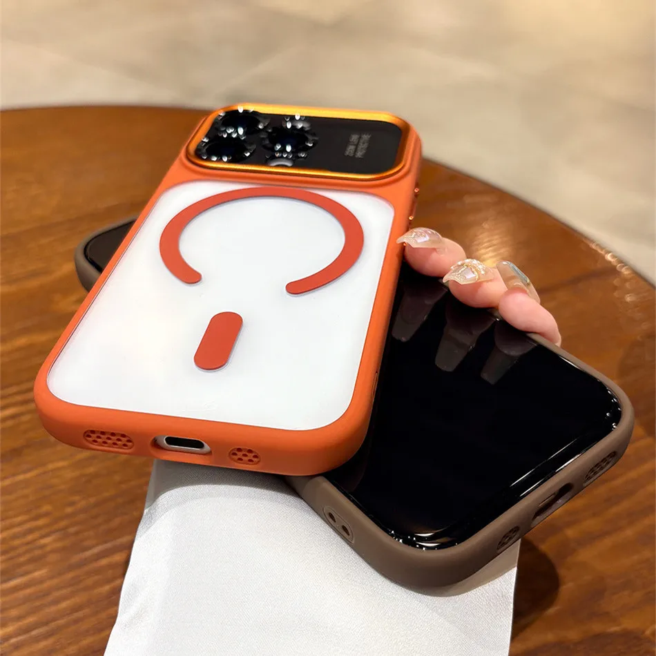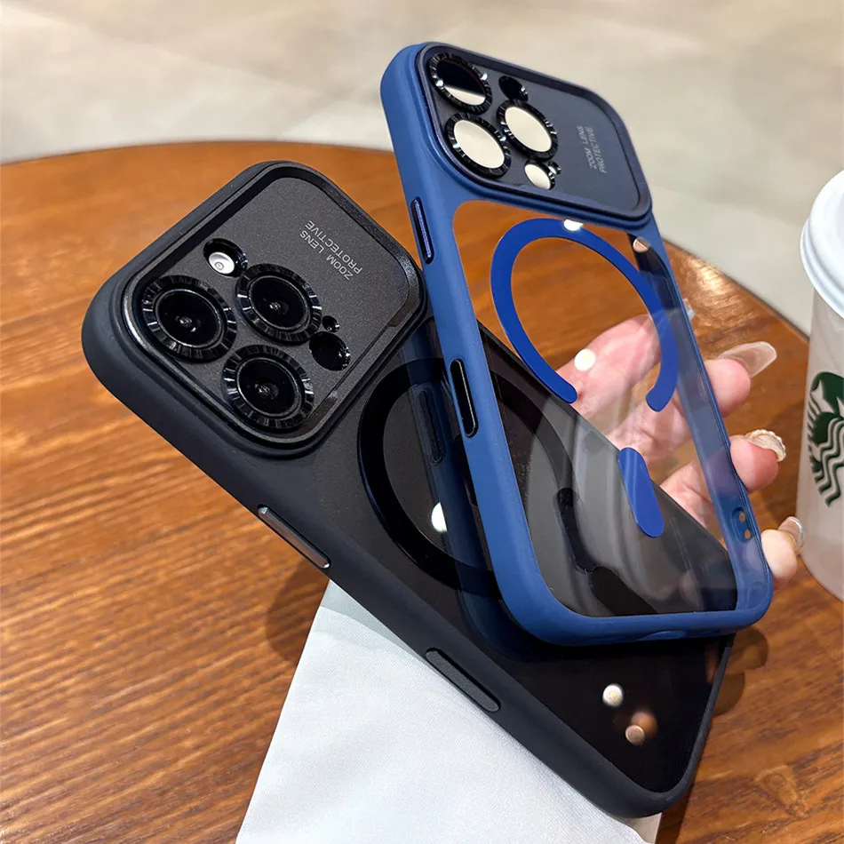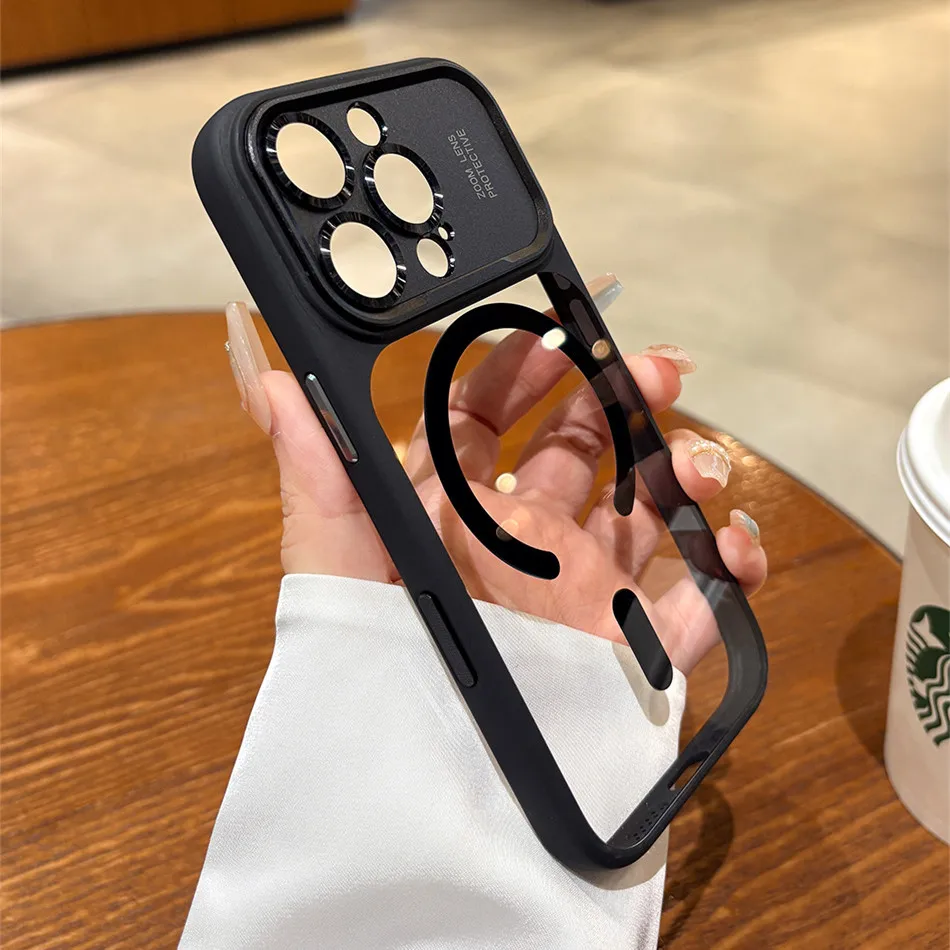Transparent Plastic Magsafe Case For iPhone 17 Pro Max Air 16 15 Big Camera Bezel Magnetic Wireless Armor Cover Turn to 17Pro