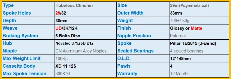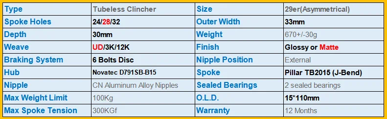 29er 33*30mm 6 Bolts Disc Brake Carbon Wheelset