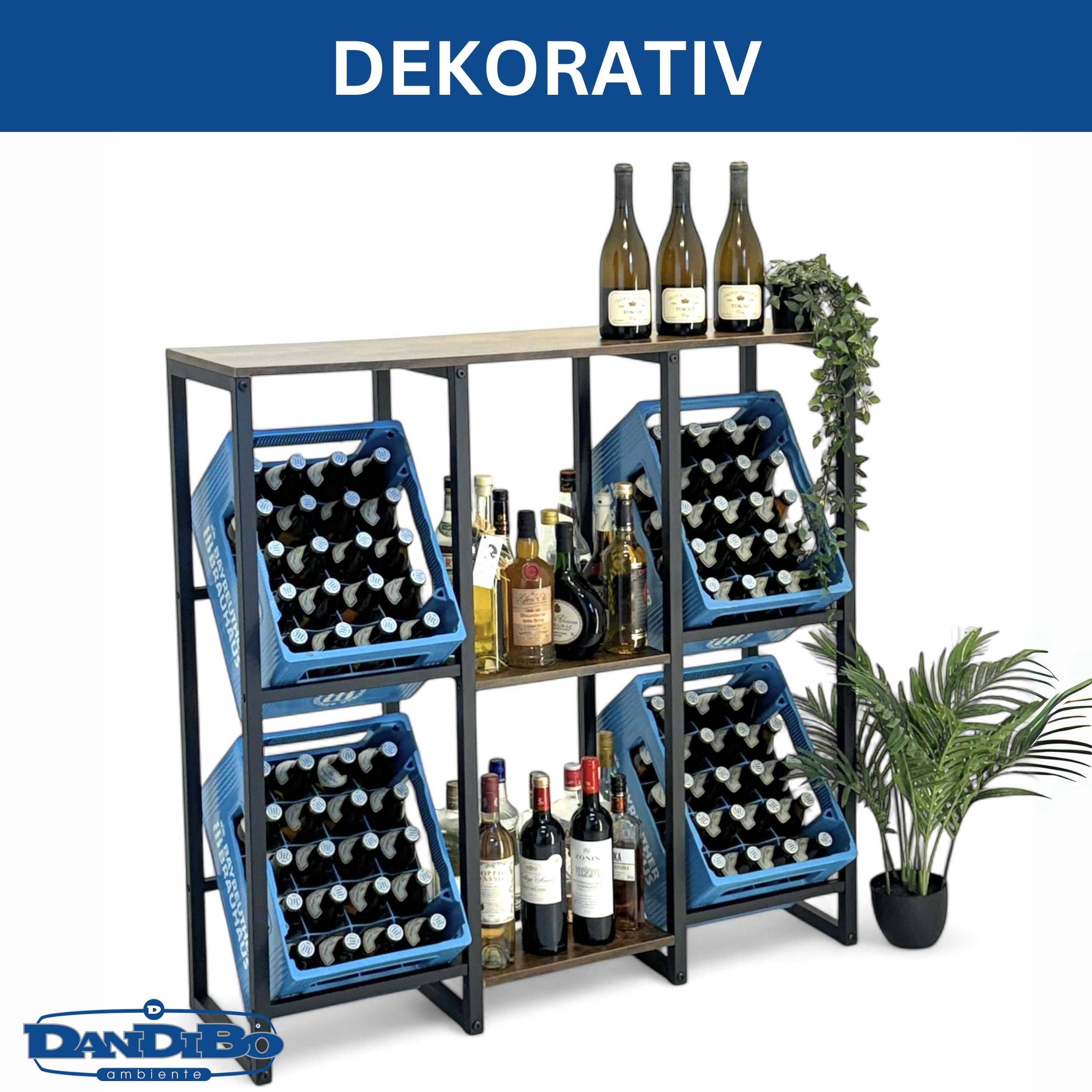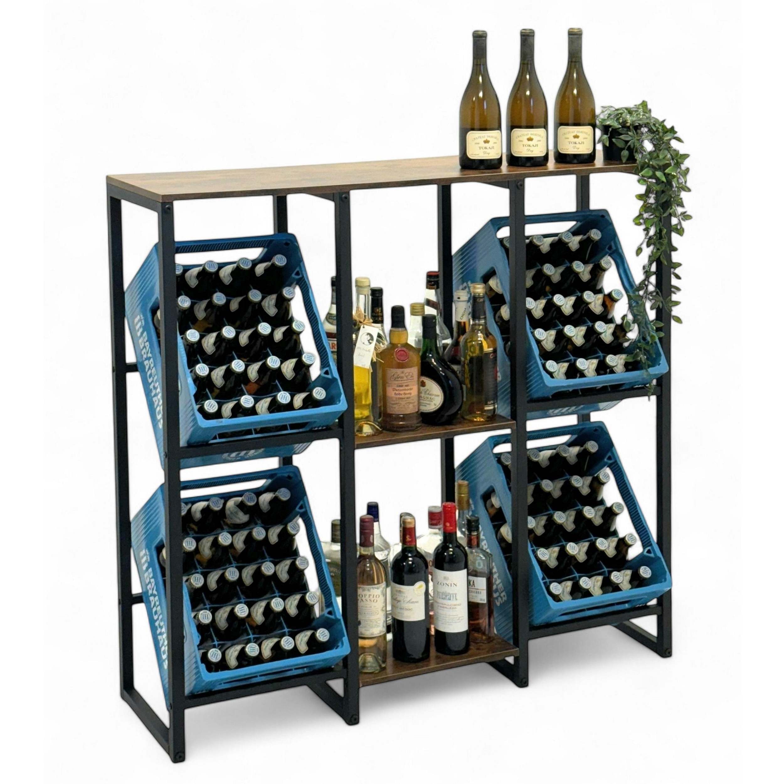 PLATZ FÜR 4 GETRÄNKEKISTEN UND ZUSÄTZLICHE ABLAGEN: Mit Platz für bis zu 4 Getränkekisten ermöglicht das Regal eine praktische Organisation Ihrer Vorräte. Die stabilen Holzablagen bieten zusätzlichen Platz für Flaschen, Gläser oder andere Gegenstände, die griffbereit sein sollen.
