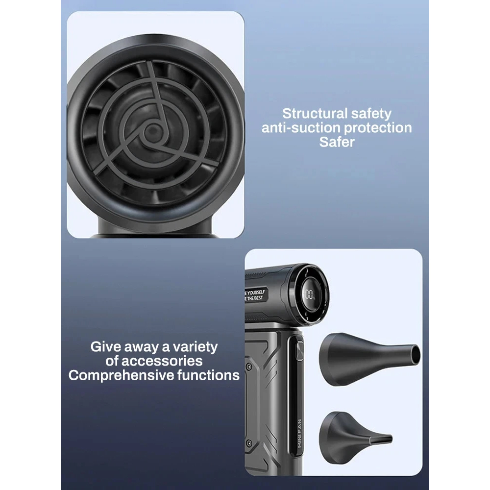 Take cleaning and cooling performance to the next level with this 450,000RPM High-Speed Brushless Ultra Turbo Fan Jet Blower. Designed for professionals and tech enthusiasts, this compact yet powerful handheld blower is your ultimate tool for dust removal, electronics maintenance, small engine cleaning, and more!