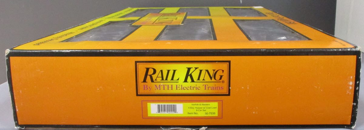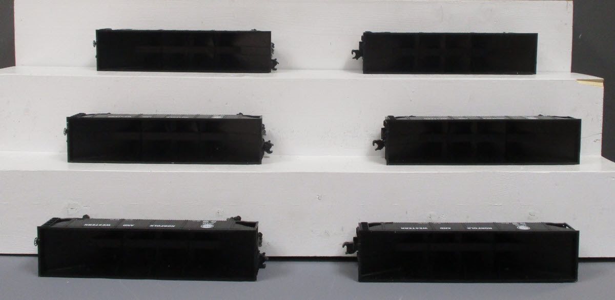 Here is a MTH 30-7535 O Gauge Norfolk & Western (N&W) 4-Bay Hoppers w/Coal Loads 6-Car Set #1.