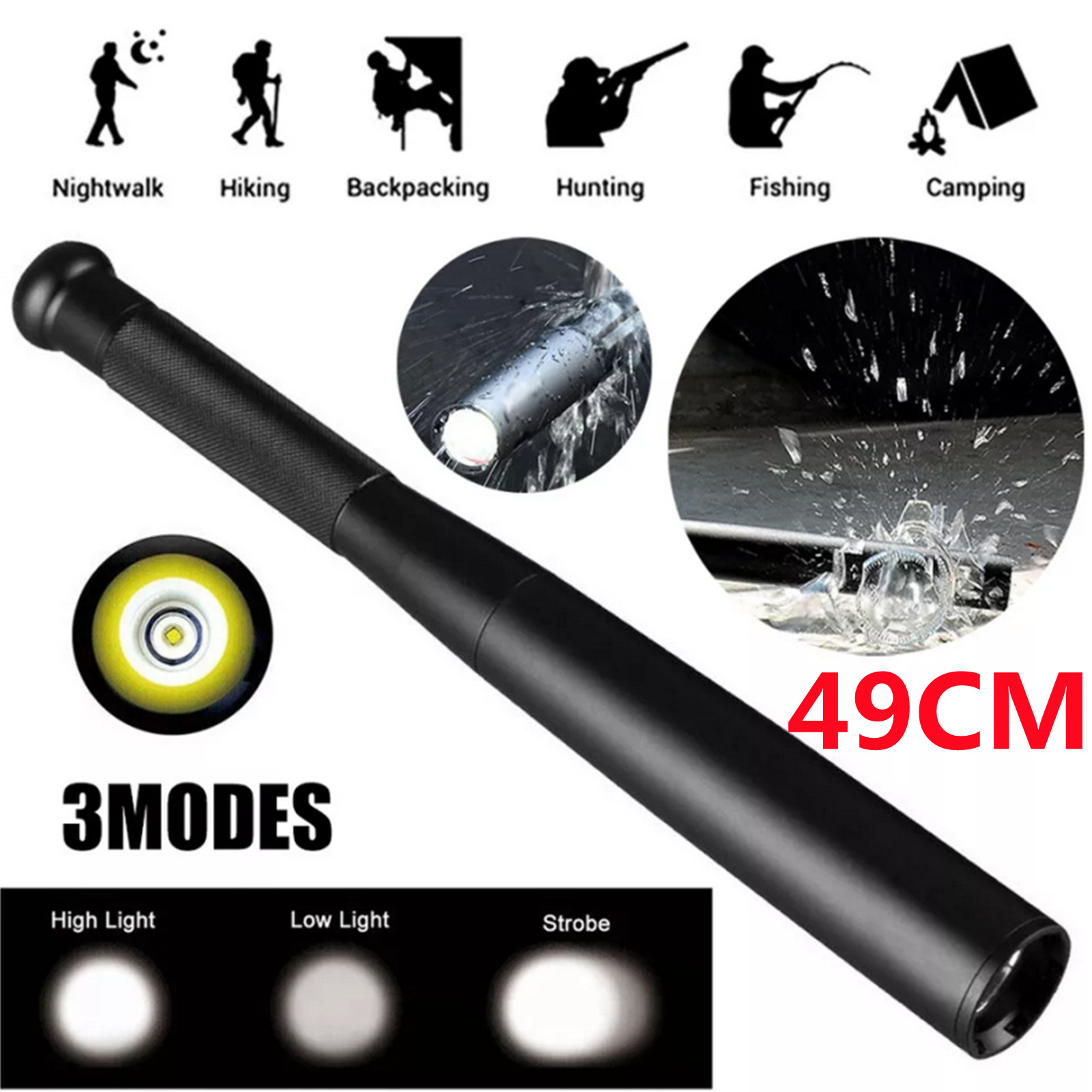 49CM Baseball LED Telescopic Flashlight Waterproof Tactical Light for Travel AU