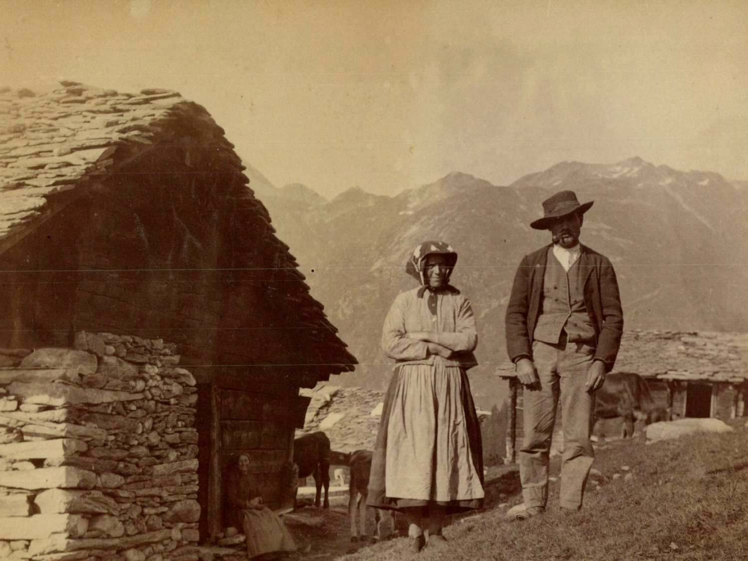 Suisse, Berisal, Paysans devant leur maison, Tirage vintage, 1890