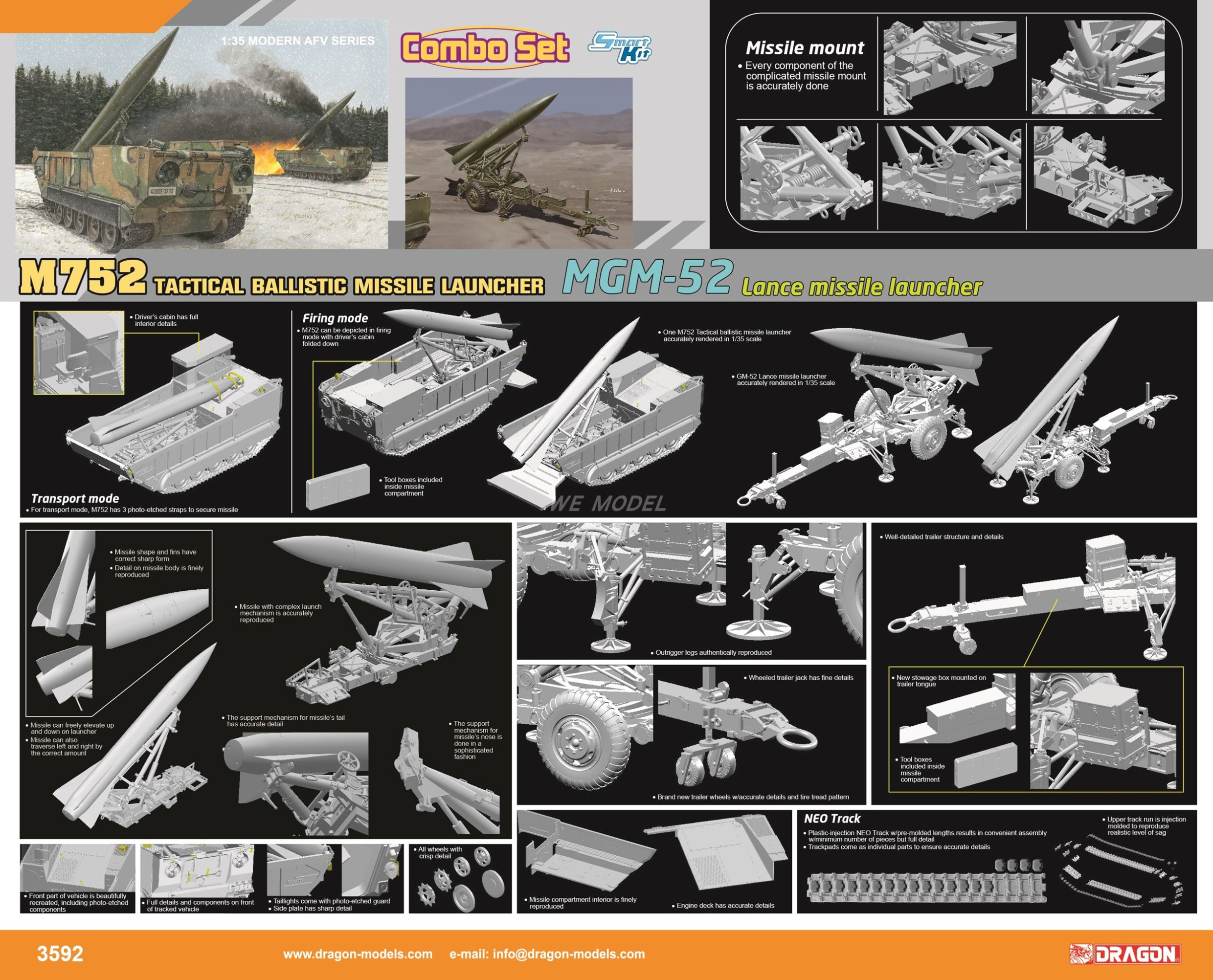 DRAGON 1/35 3592 M752 Tactical Ballistic Missile Launcher&MGM-52 Lance Missile