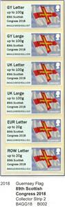 GUERNSEY MNH 2018 Post and Go,Flag Scottish Congress O/P Collector Strip