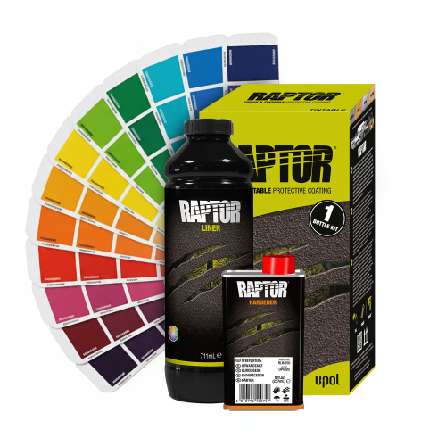 Das Raptor Kit enthält bereits angemischte Farben, sodass nur noch der Härter hinzugemischt werden muss.