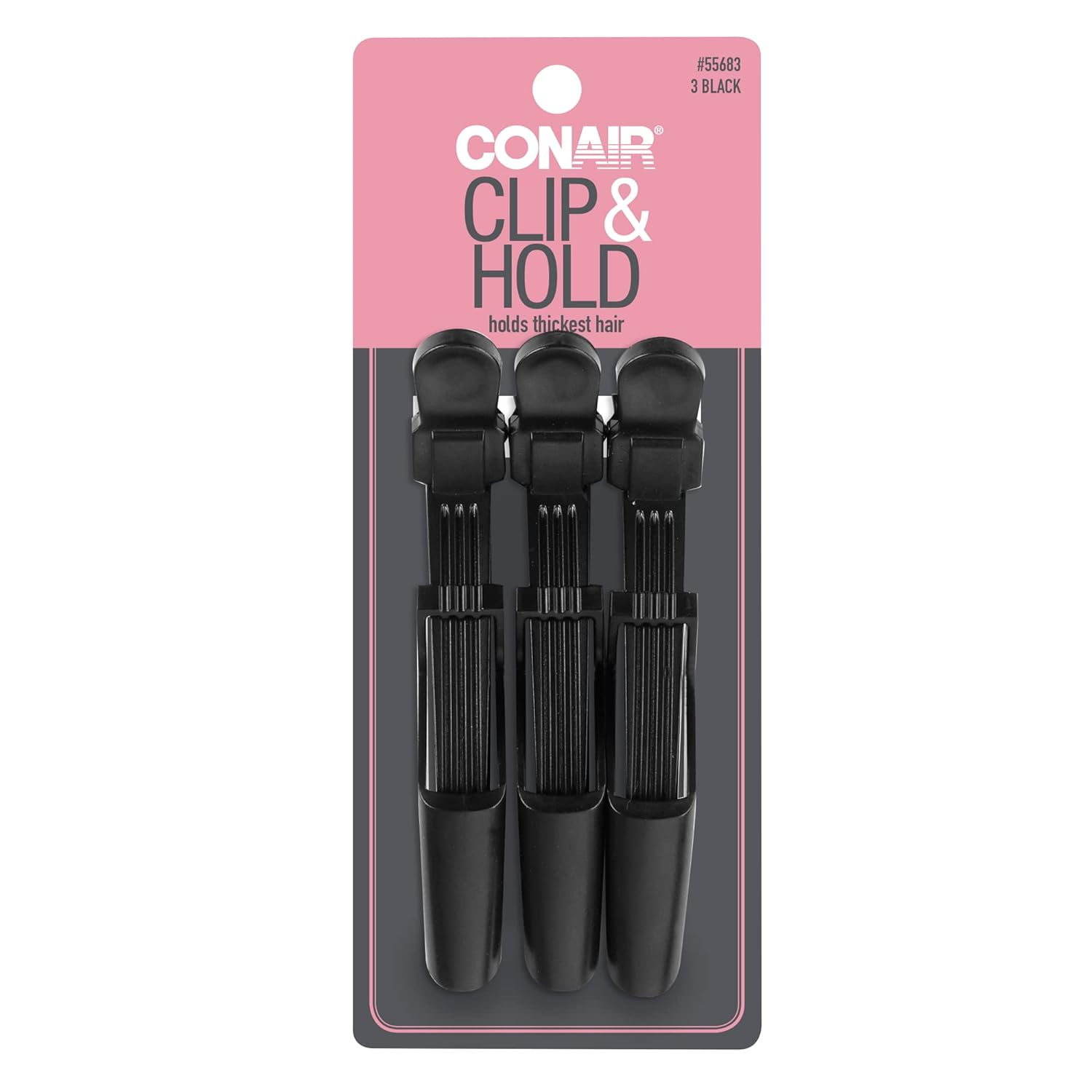 Conair Clip & Hold Professional Mega Hold Styling Clips, Black, 3 Count