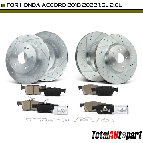 12pcs Drilled Rotor & Brake Pad for Honda Accord 18-22 Front & Rear Left & Right