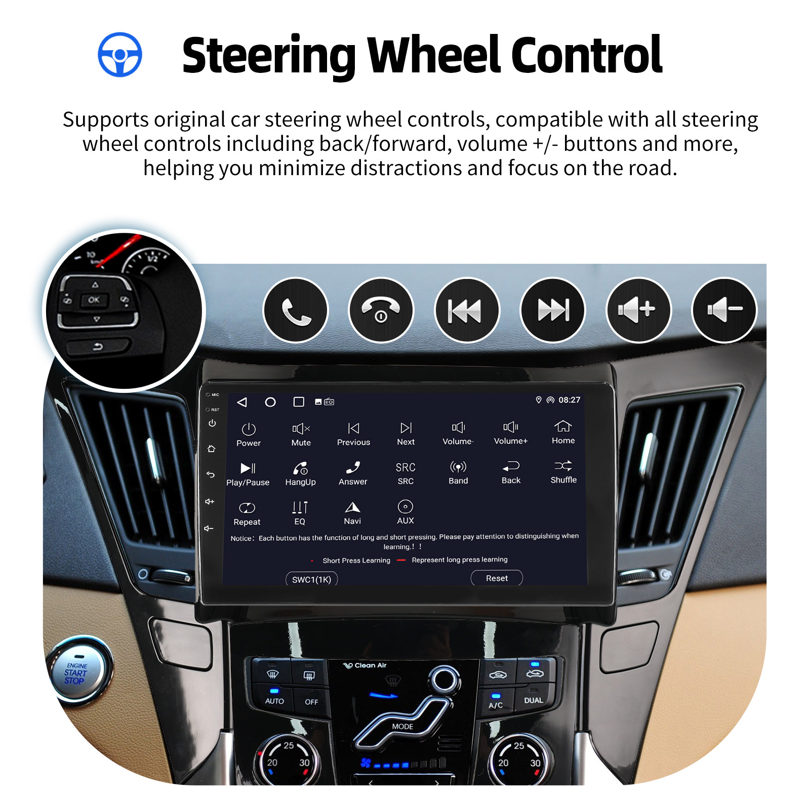 AHD Rear View Camera Input & Steering Wheel Control: After connecting to the rear view camera. The radio automatically displays the reversing image as soon as you engage reverse gear. Make your daily reversing safer. Support AHD camera. Support original car steering wheel control to make driving more convenient and safer