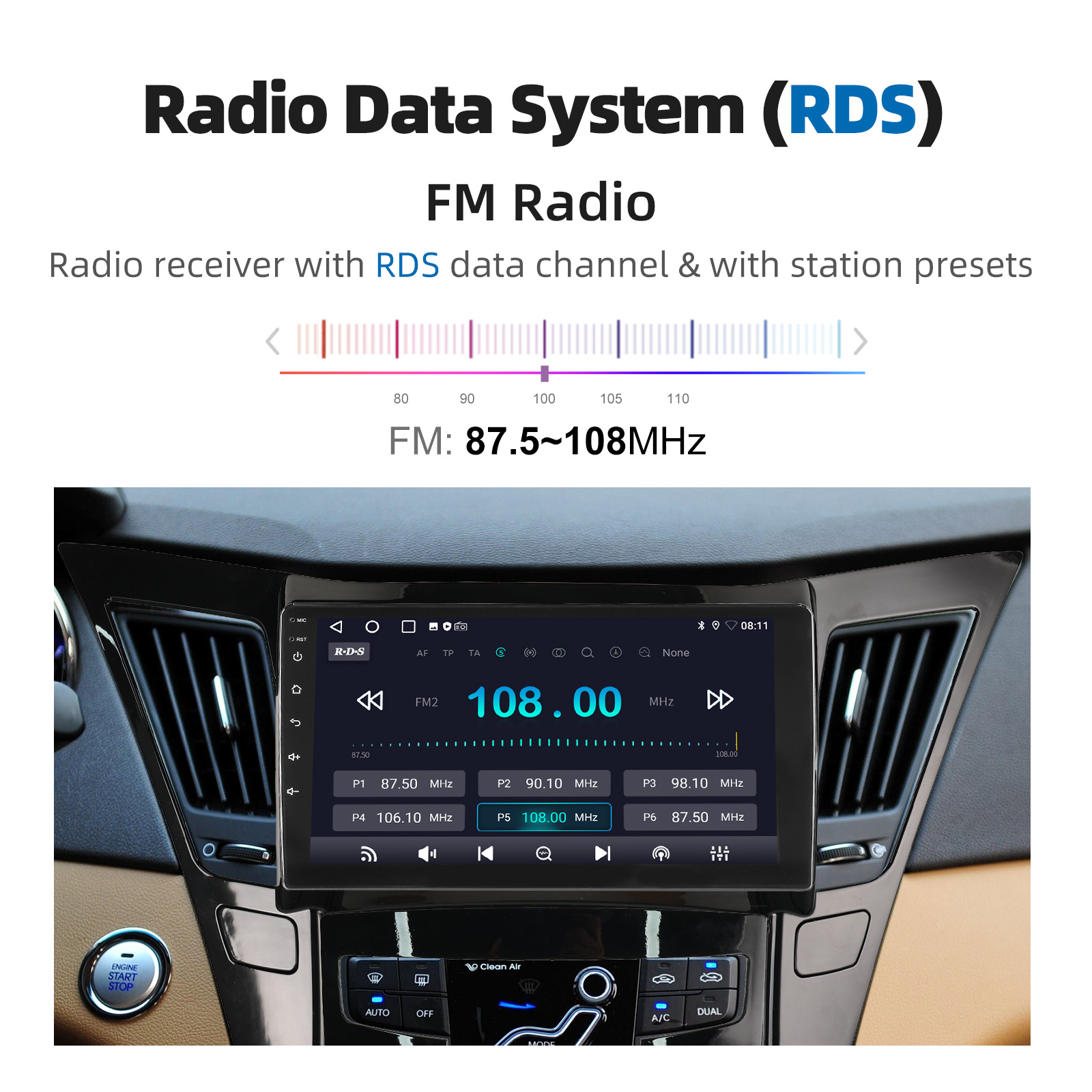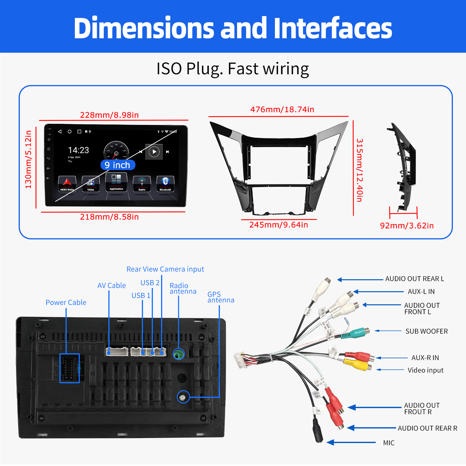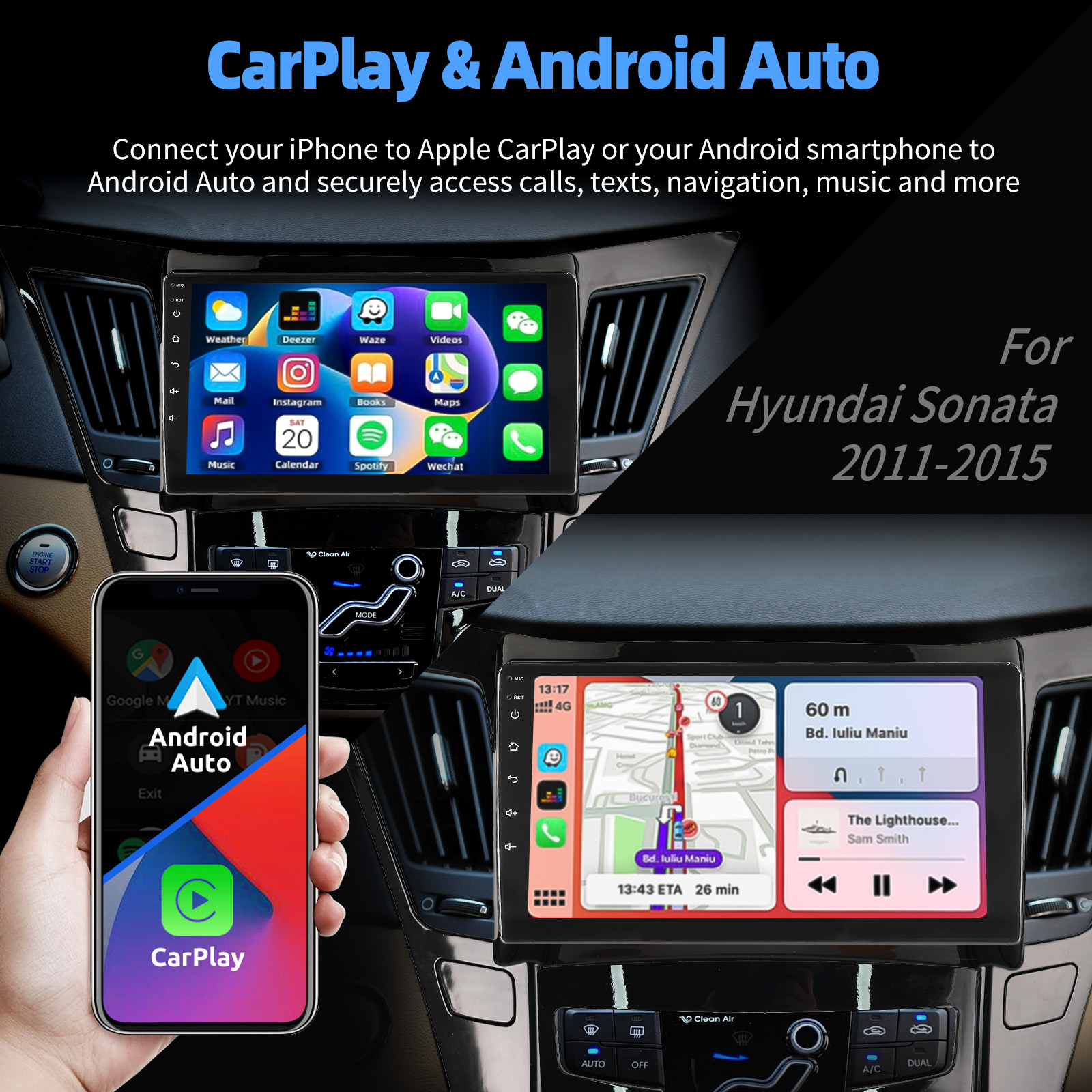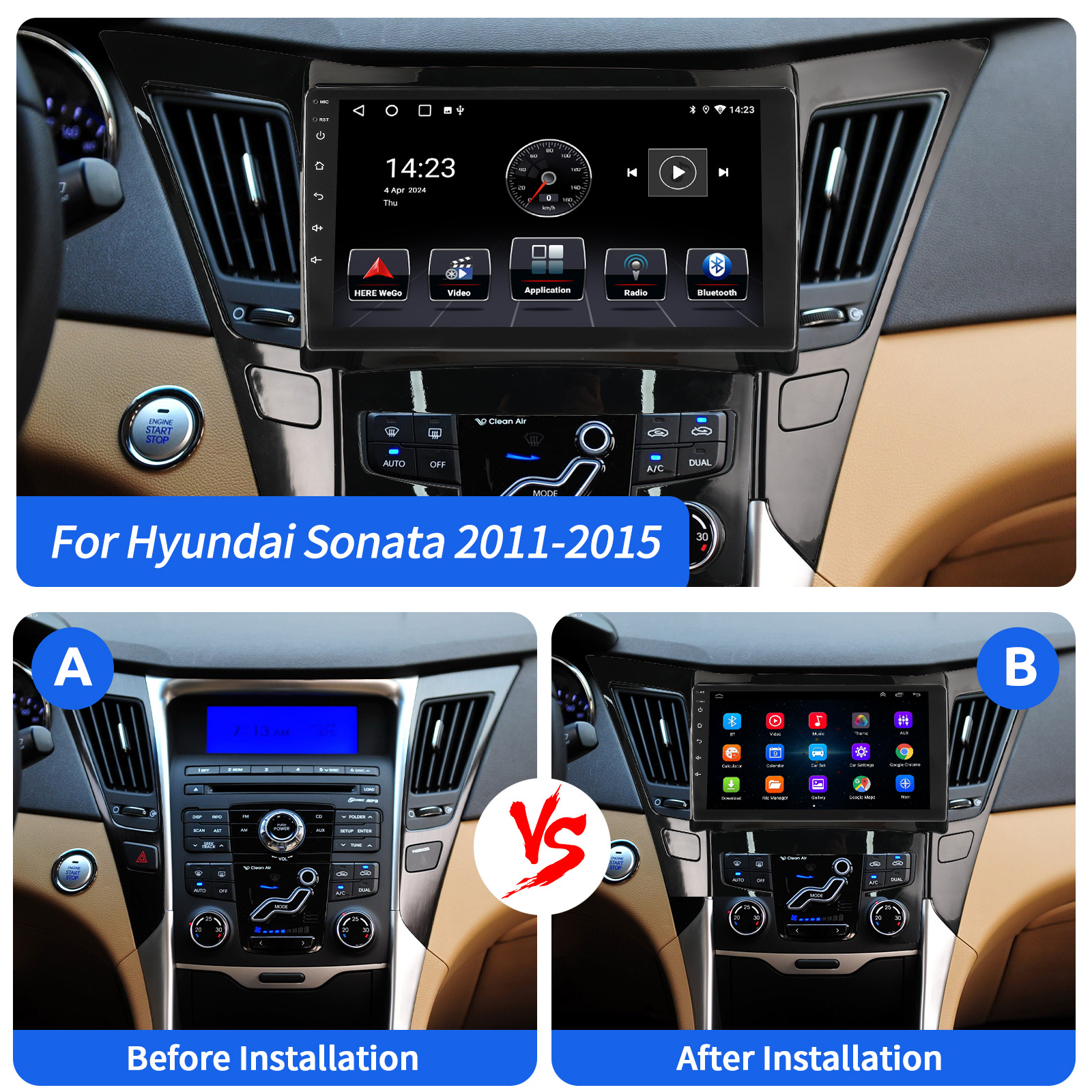 9 Inch Android 14 Car Radio For Hyundai Sonata 2011-2015: The Android car radio with 9" 1280*720 HD capacitive touch screen, 2GB RAM and 32GB ROM allows you to download your favorite apps and videos, so that driving will never be boring .No additional frame, no cable change, plug and play.