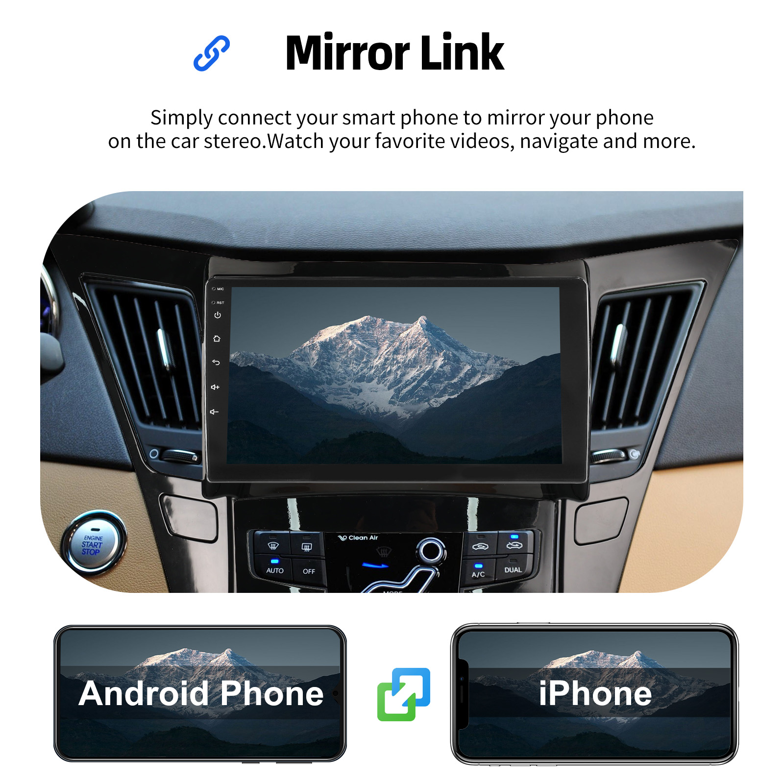 MIRROR LINK: With this car radio, you can experience the amazing Mirror Link function, compatible with iOS and Android phones. You can mirror your smartphone screen to the car radio using apps like Google Maps, Spotify, Youtube, etc. Replace your cell phone with the car screen and turn your vehicle into a smart platform.