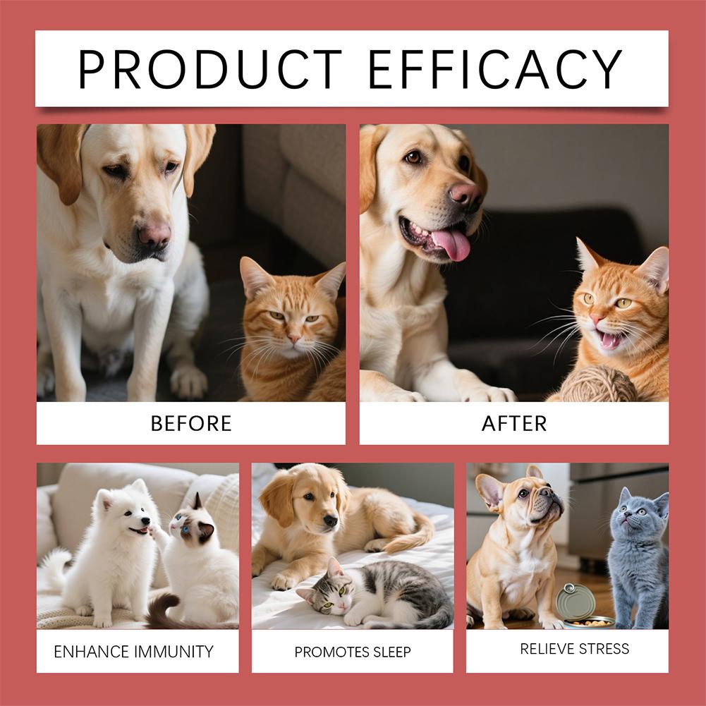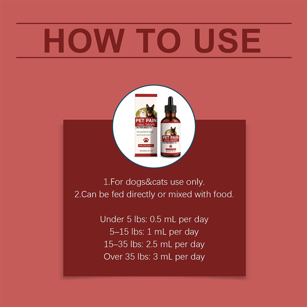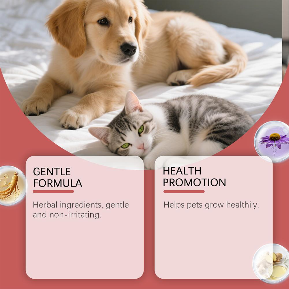 Our herbal care drops for cats and dogs are carefully formulated with Ashwagandha and eicosapentaenoic acid. They are designed to improve flexibility and agility. They are extremely convenient to use. For dogs and cats only. Feed directly or mix with food. Usage: Under 5 lbs: 0.5 ml per serving; 5-15 lbs: 1 ml per serving; 15-25 lbs: 2 ml per serving; 25-35 lbs: 3 ml per serving; 35 lbs and above: 4 ml per serving. It also helps maintain cartilage and connective tissue health, enhancing overall resilience.