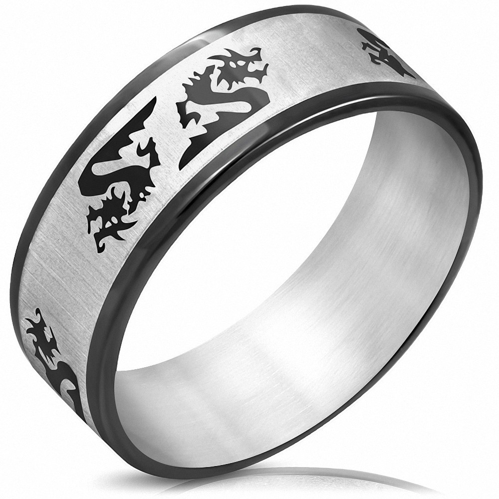8 mm | Anillo 2 anillos planos con forma del zodíaco chino con dragón y espiral en cerámica blanca