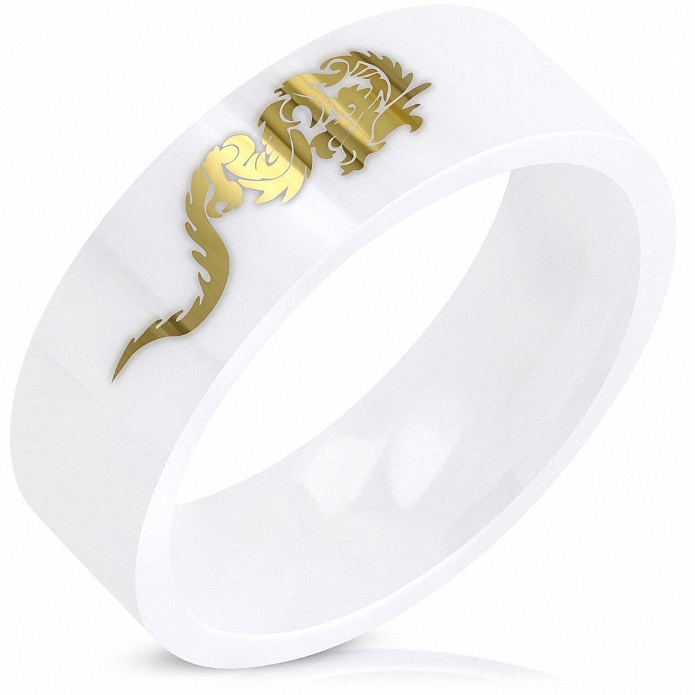 8 mm | Anillo 2 anillos planos con forma del zodíaco chino con dragón y espiral en cerámica blanca 8 mm | Anillo 2 anillos planos con forma del zodíaco chino con dragón y espiral en cerámica blanca