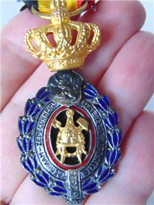Medal condition is minty - there is vibrant cobalt blue enameling within the leaf design, and red enamel around the pierced center - complete with a rampant lion on crest underneath the crown - I think this is silver, but not positive. Acquired recently from the estate of an avid Napoleon collector - it is a colorful and handsome piece. Wonderful addition to any display!