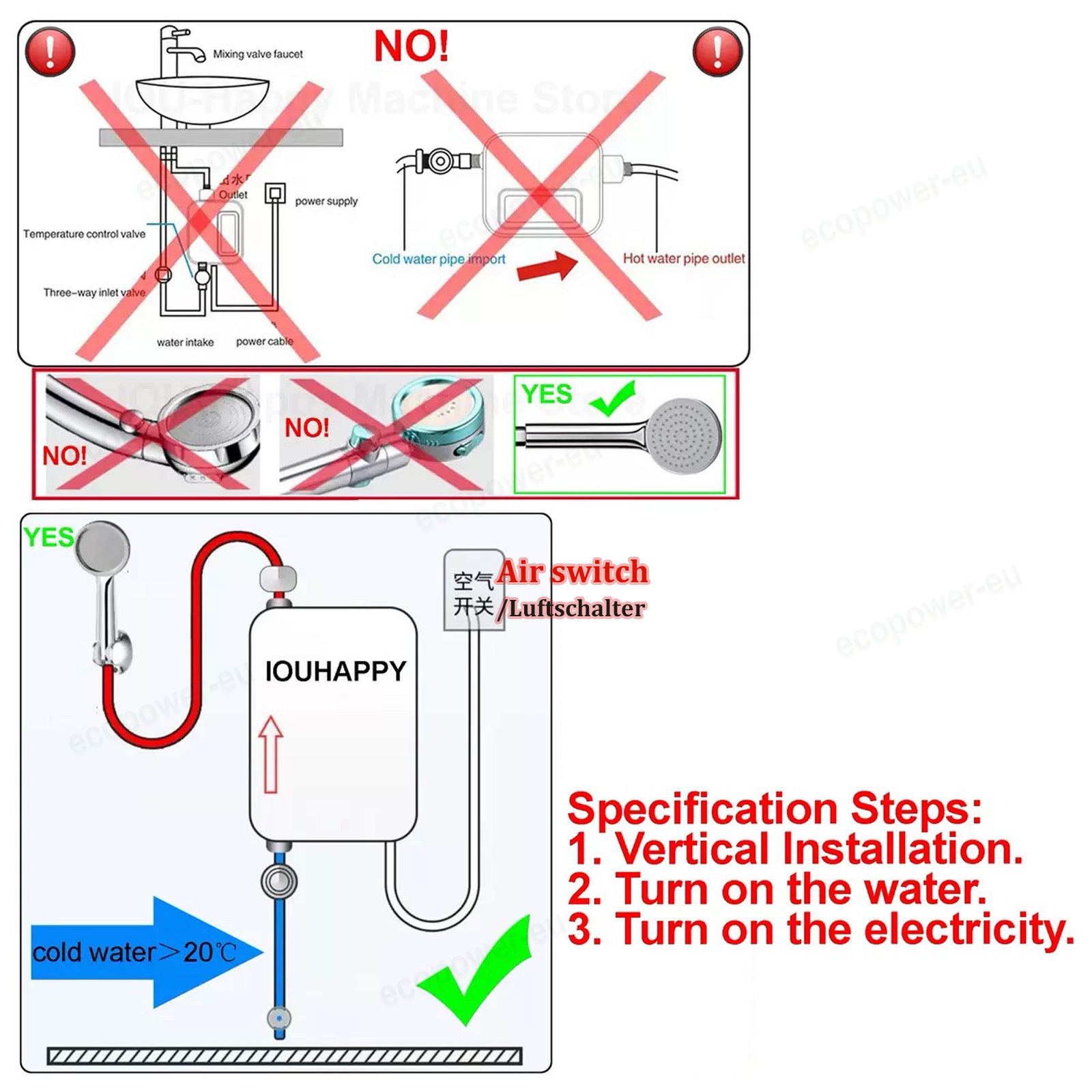 Note: Instantaneous water heaters cannot be used as kitchen water heaters